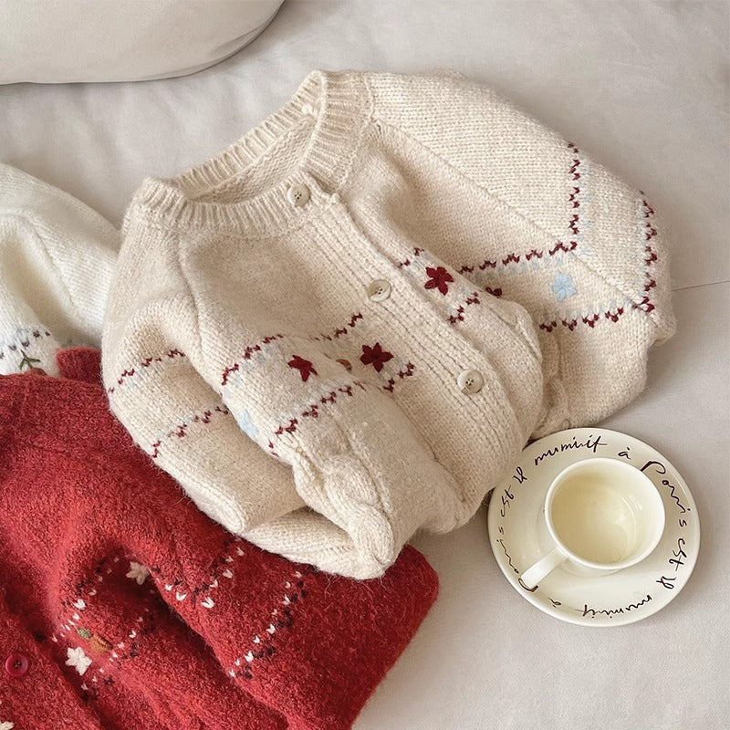 Damen Strickjacke mit floralen Applikationen und bequemen Knöpfen Heidi-Mode