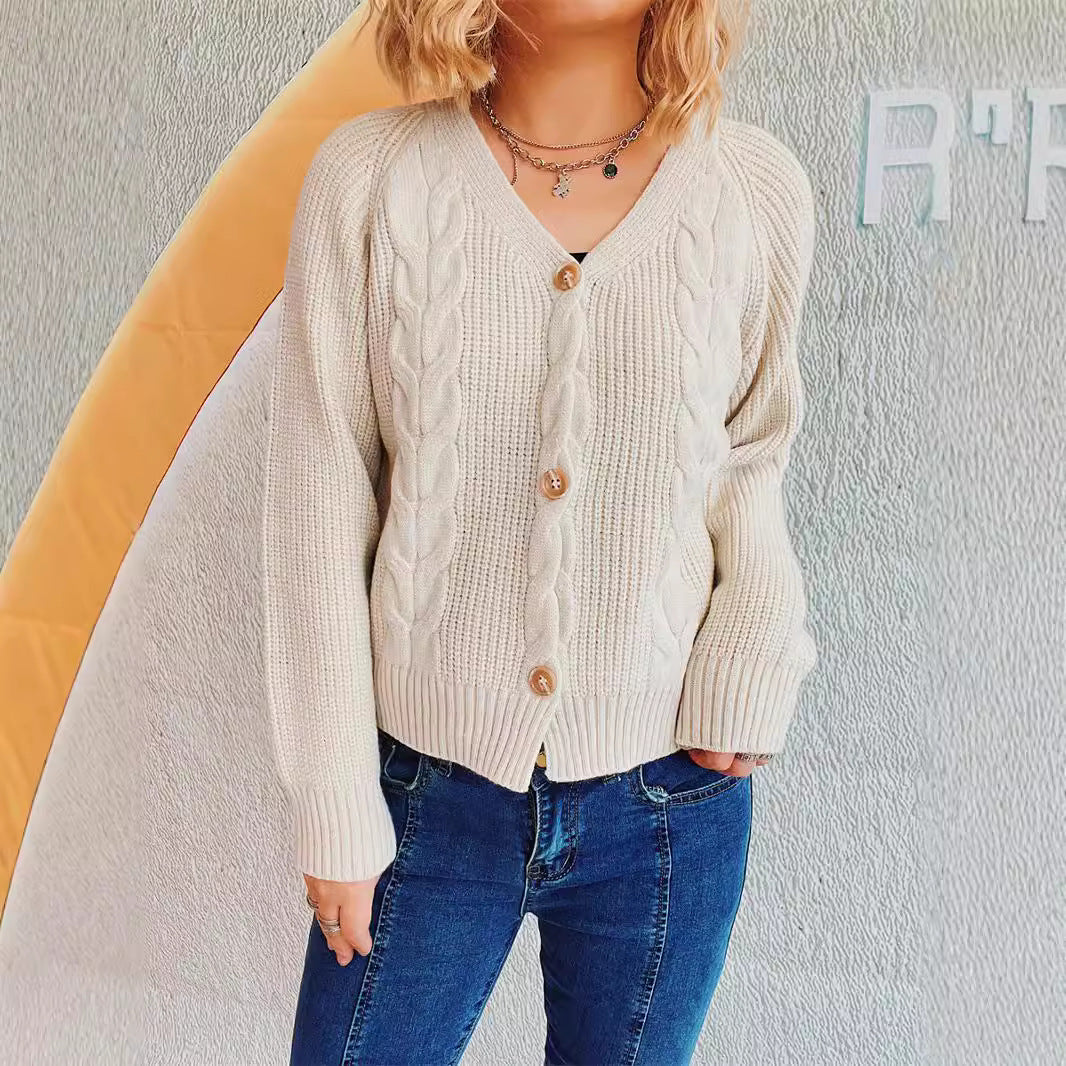 Damen Strickjacke mit Zopfdesign und bequemen Knopfdetails Heidi-Mode
