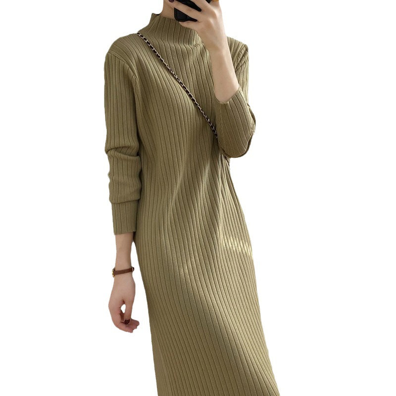 Damen Strickkleid mit hohem Kragen und Rippenstruktur Heidi-Mode