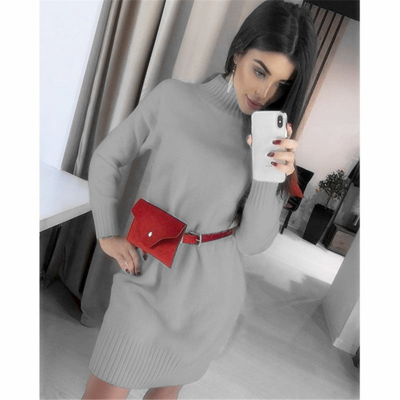Damen Strickkleid mit hohem Kragen und Rippstruktur Heidi-Mode