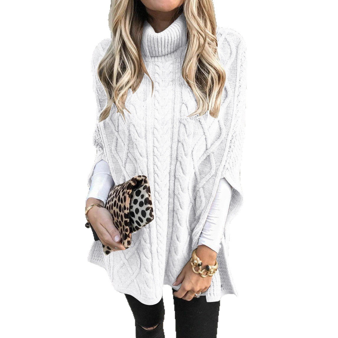 Damen Strickponcho mit hochschließendem Kragen und klassischem Kabelmuster Heidi-Mode