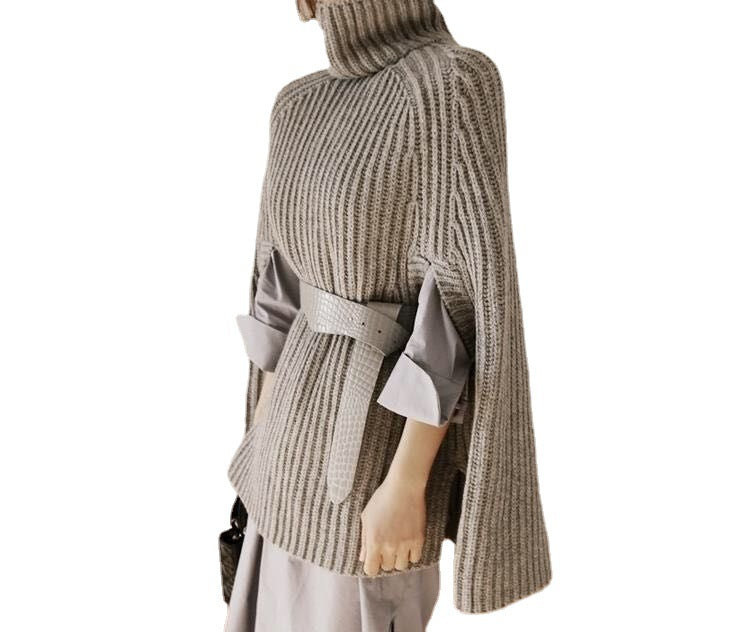 Damen Strickponcho mit hochstehendem Kragen und modischem Rippenmuster Heidi-Mode