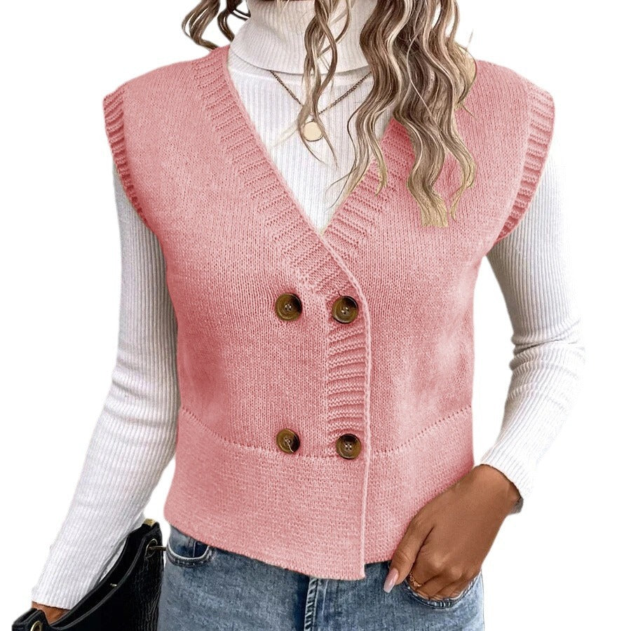 Damen Strickweste mit doppelter Knopfleiste und stylischem V-Ausschnitt Heidi-Mode