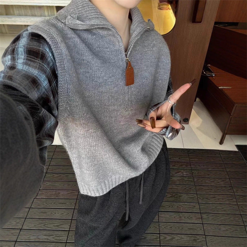 Damen Strickweste mit hohem Kragen und Reißverschluss Heidi-Mode