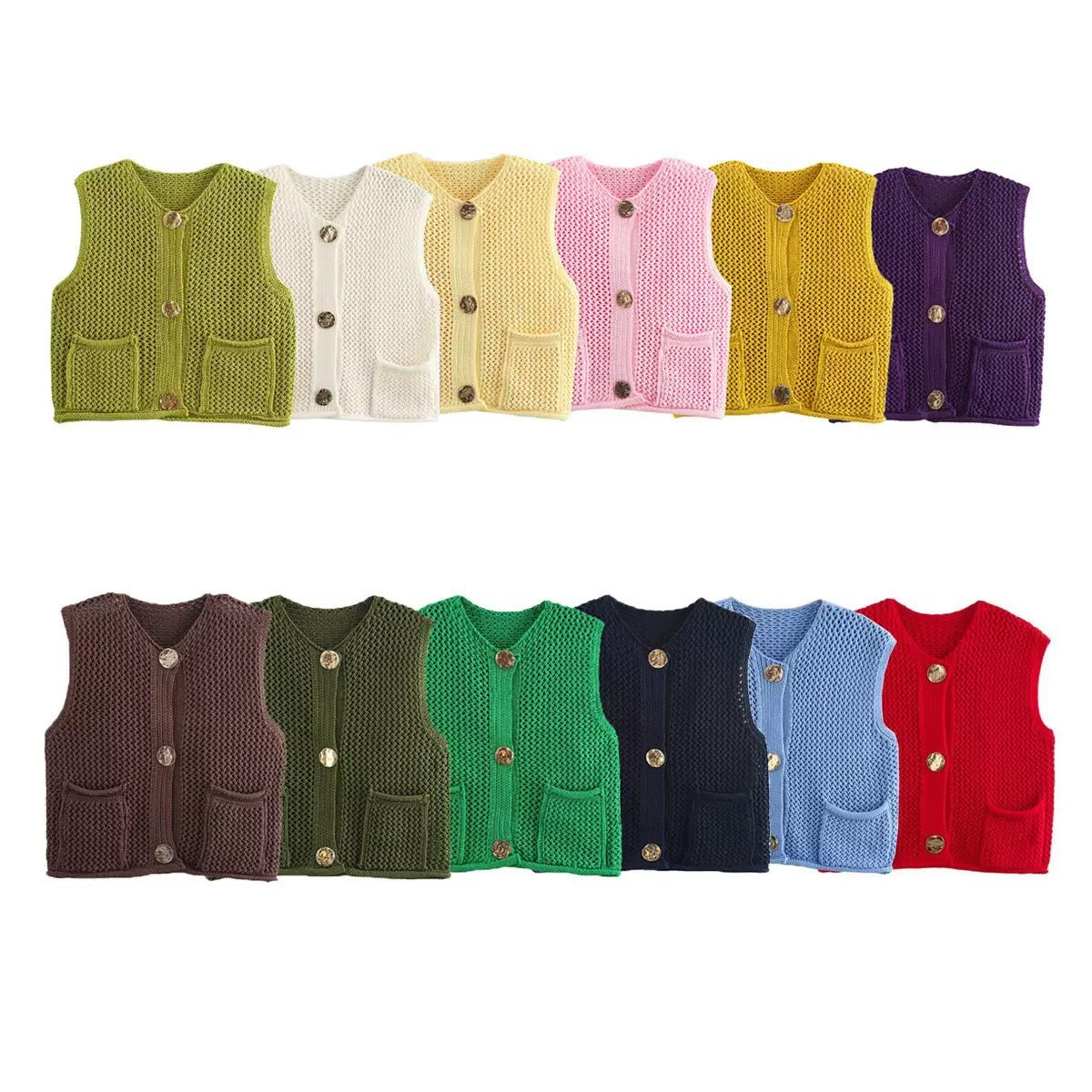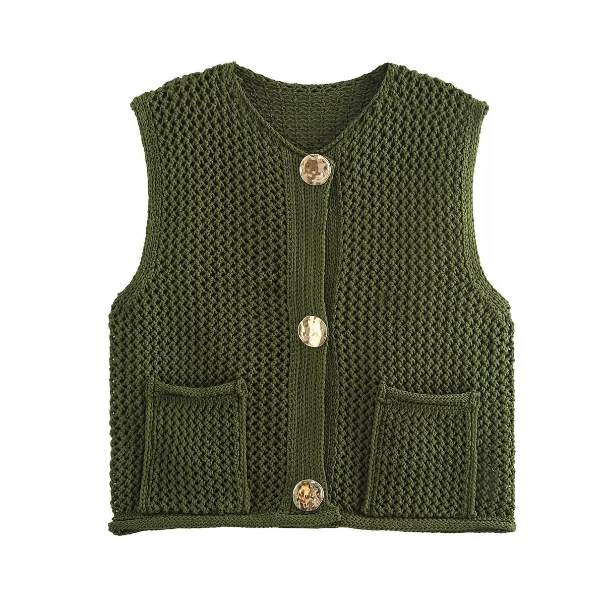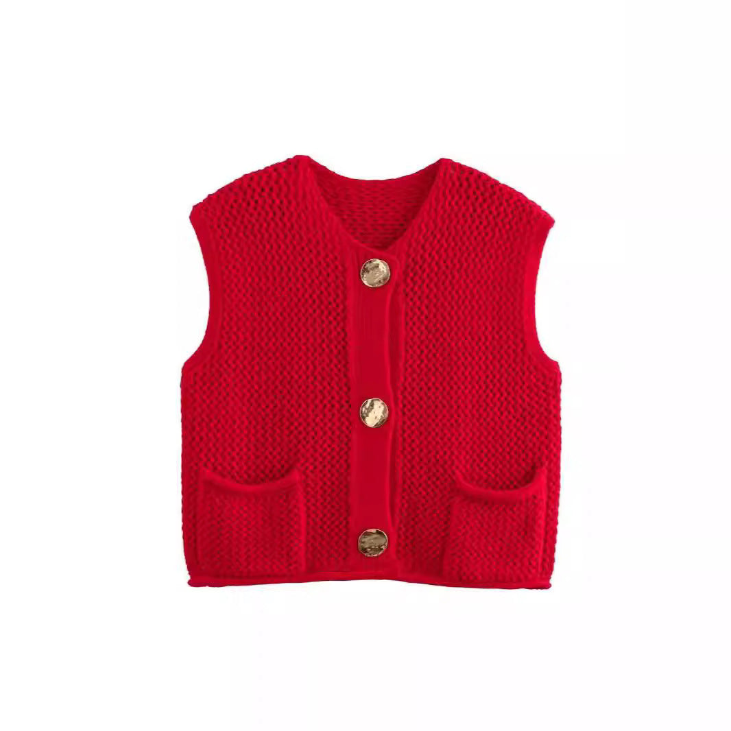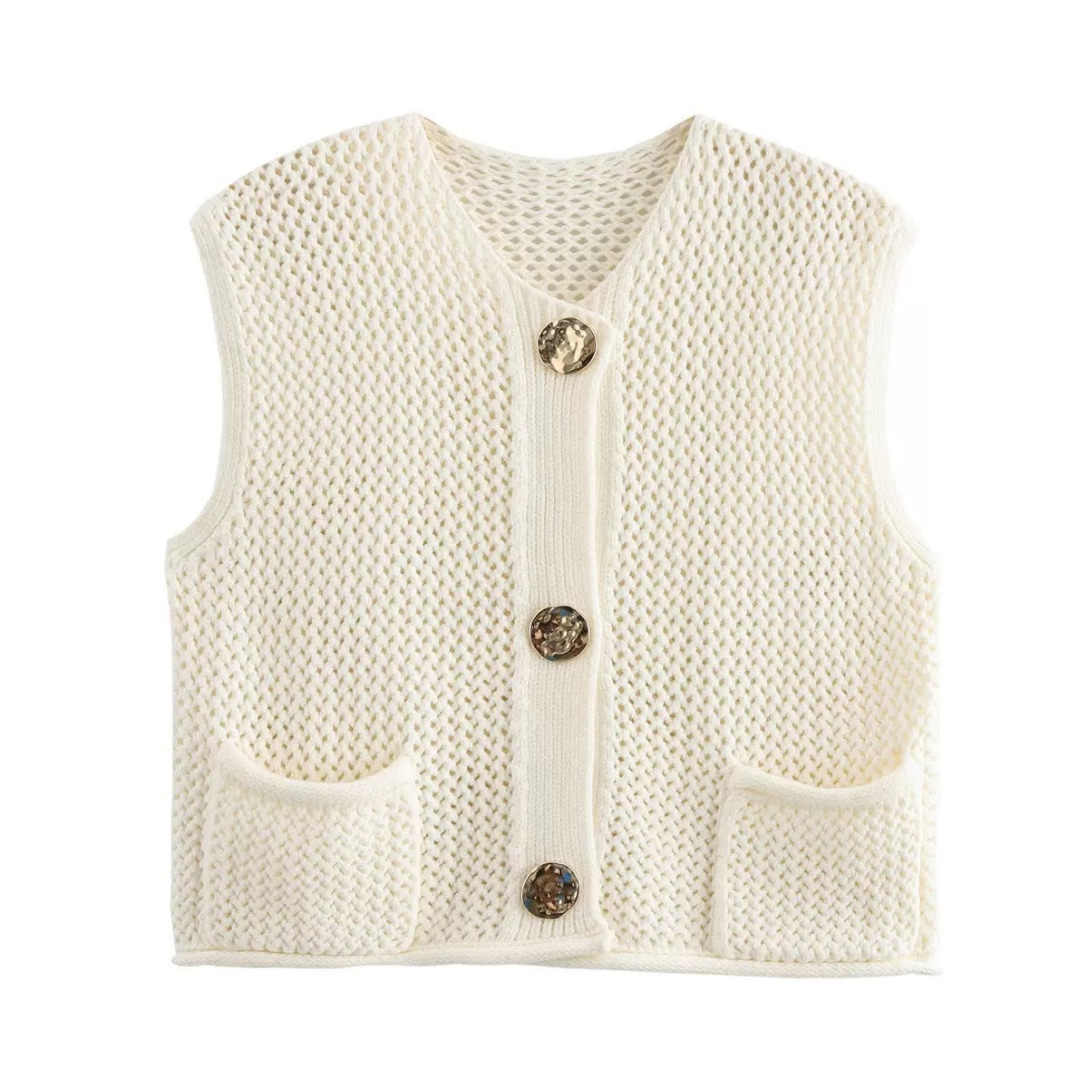 Damen Strickweste mit Knopfleiste und Taschen Heidi-Mode