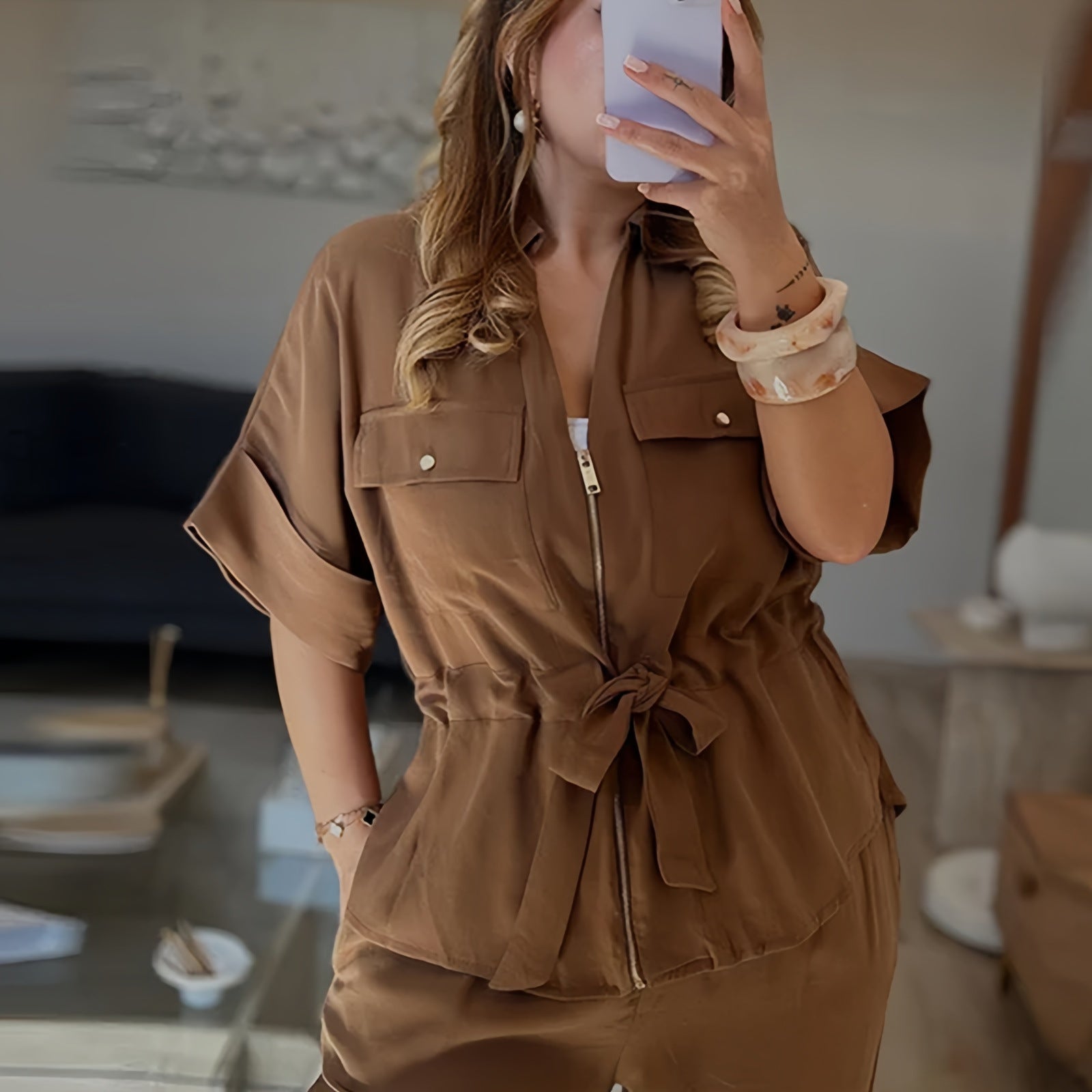 Damen Trendige Blusenkombination mit lässigem Schnitt und Taillengürtel Heidi-Mode