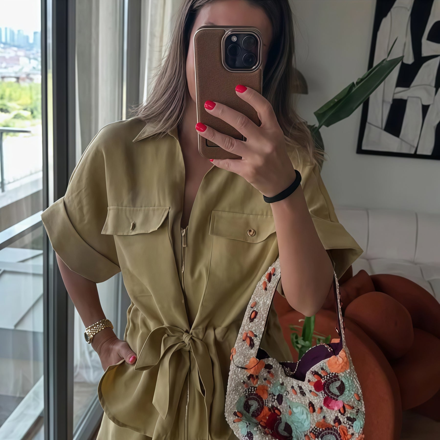• Taillengürtel: Verstellbarer Gürtel für eine feminine Silhouette und einen individuellen Look.