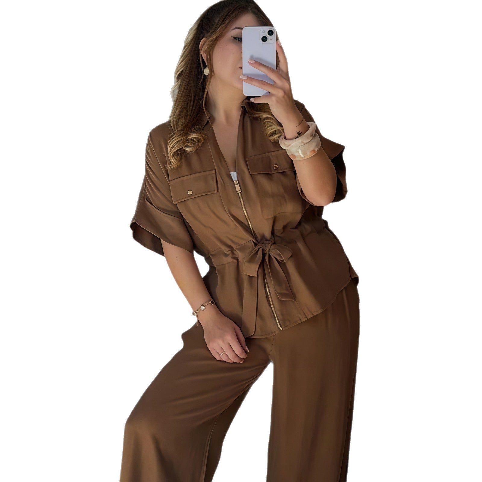 Entdecken Sie die stilvolle Damen Trendige Blusenkombination mit lässigem Schnitt und Taillengürtel von Heidi-Mode. Diese schicke Kombination besteht aus einer eleganten Bluse und einer passenden Hose, die perfekt für jede Gelegenheit geeignet ist.