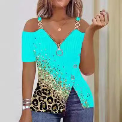 Damen Langärmliges Oberteil mit Leopardenmuster und transparenten Ärmeln Heidi-Mode