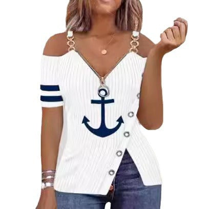 Damen Trendiges Oberteil mit schulterfreier Silhouette und dekorativen Akzenten Heidi-Mode