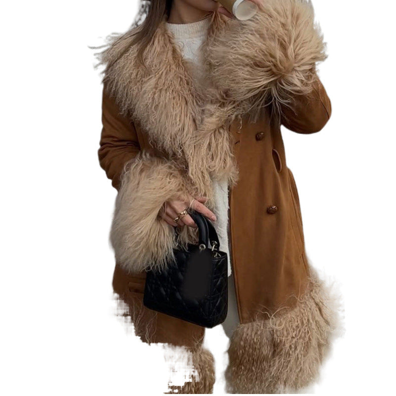 Damen Übergroßer Mantel mit luxuriösem Kunstpelz Heidi-Mode