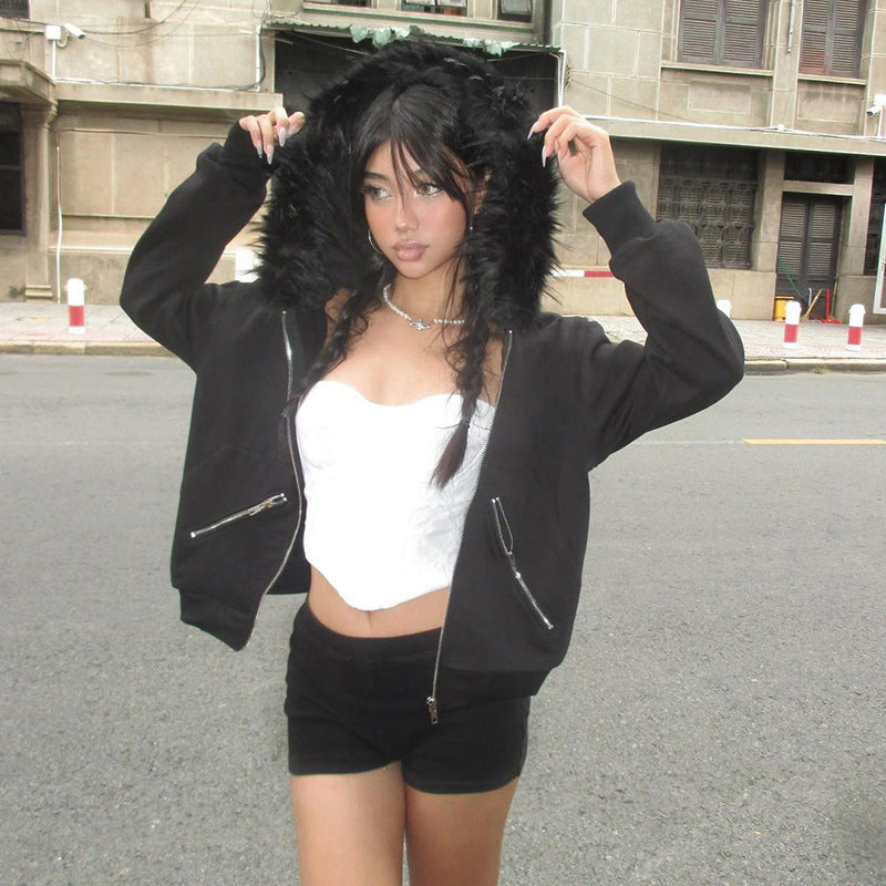 Damen warme Sweatjacke mit abnehmbarem Kunstfellkragen Heidi-Mode
