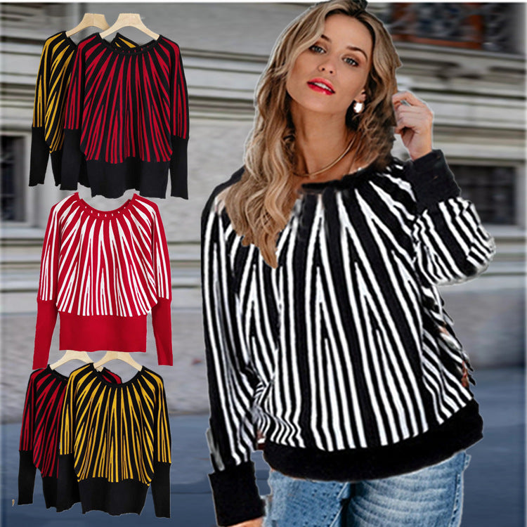 Damen weicher Pullover mit modernem Streifenmuster und weitem Schnitt Heidi-Mode