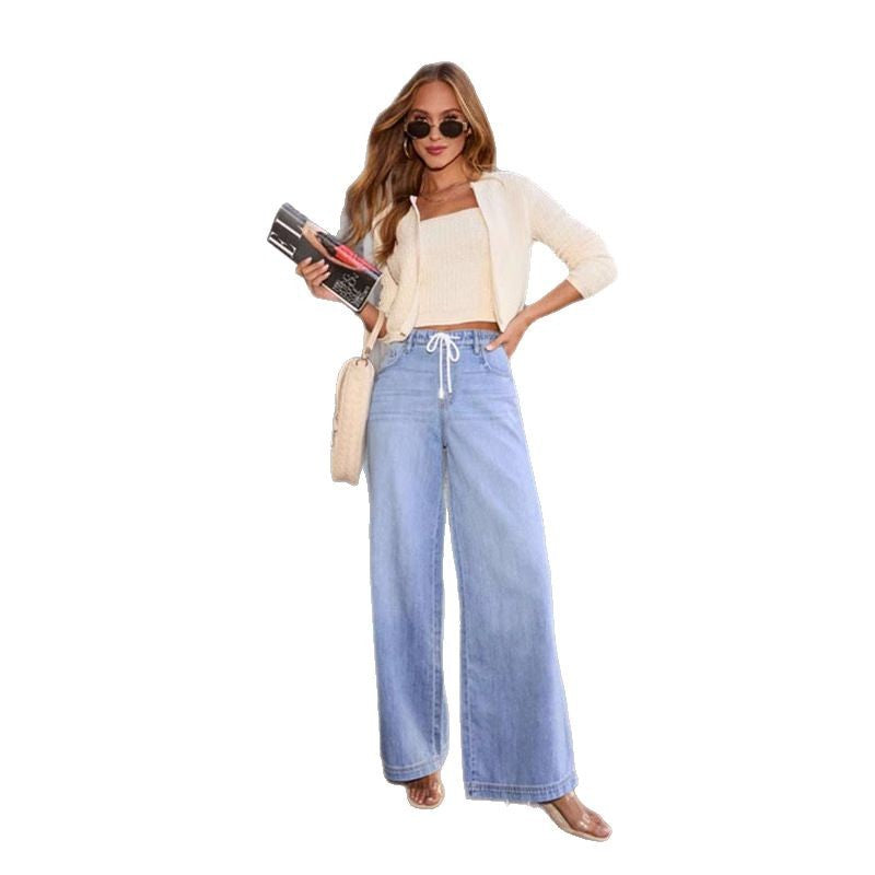 Damen Weite Jeanshose mit elastischem Bund und Kordelzug Heidi-Mode