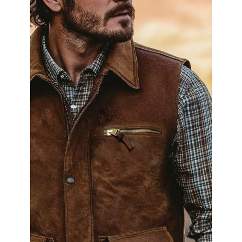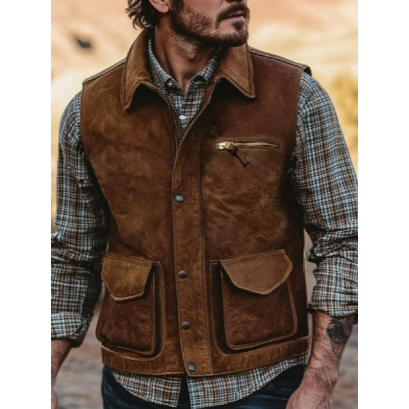 Unsere stilvolle Weste aus hochwertigem Wildleder bietet nicht nur einen eleganten Look, sondern auch herausragenden Komfort und Funktionalität. Ideal für die Übergangszeit, kombiniert sie stilvolles Design mit praktischen Details.