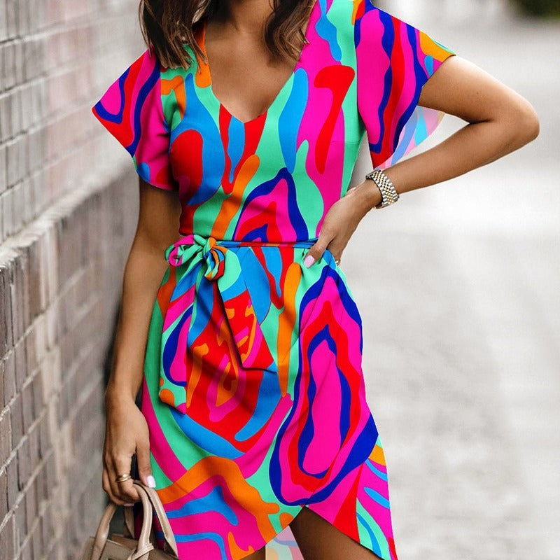 Damen Wickelkleid mit floralem Muster und eleganten Rüschendetails Heidi-Mode