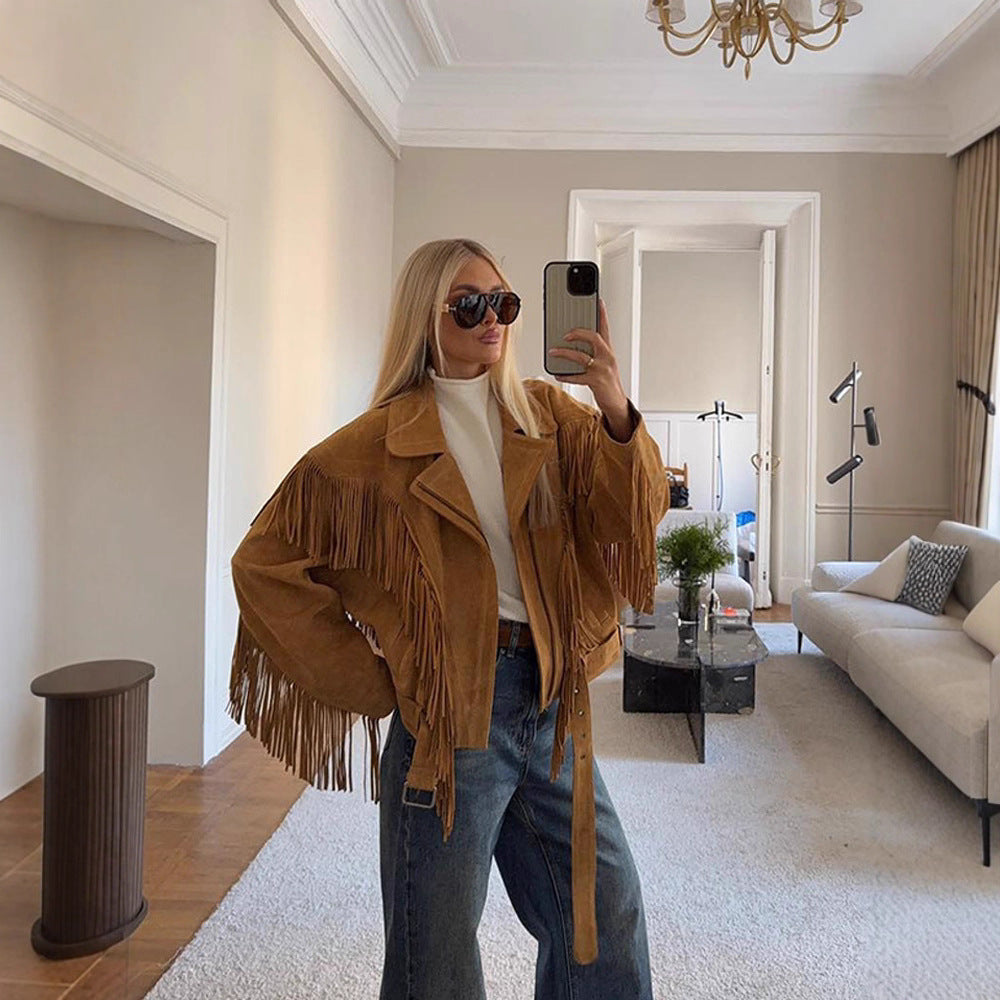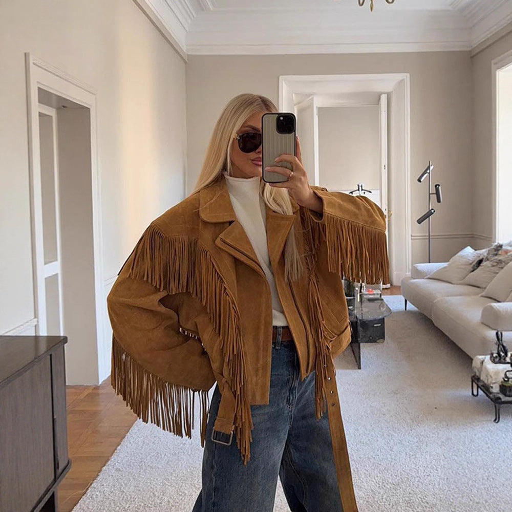 Damen Wildleder-Fransenjacke Heidi-Mode