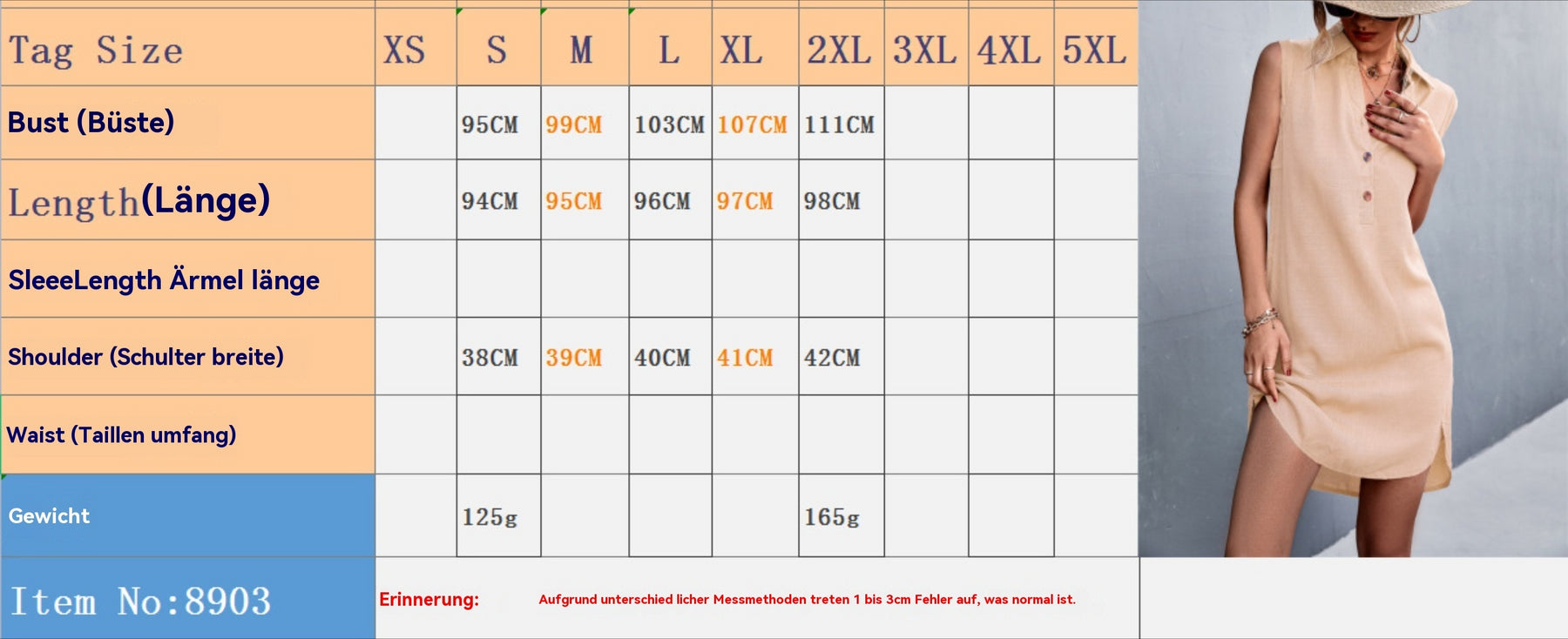 Heidi Mode | Ärmelloses geteiltes Kleid mit V-Ausschnitt und Knöpfen