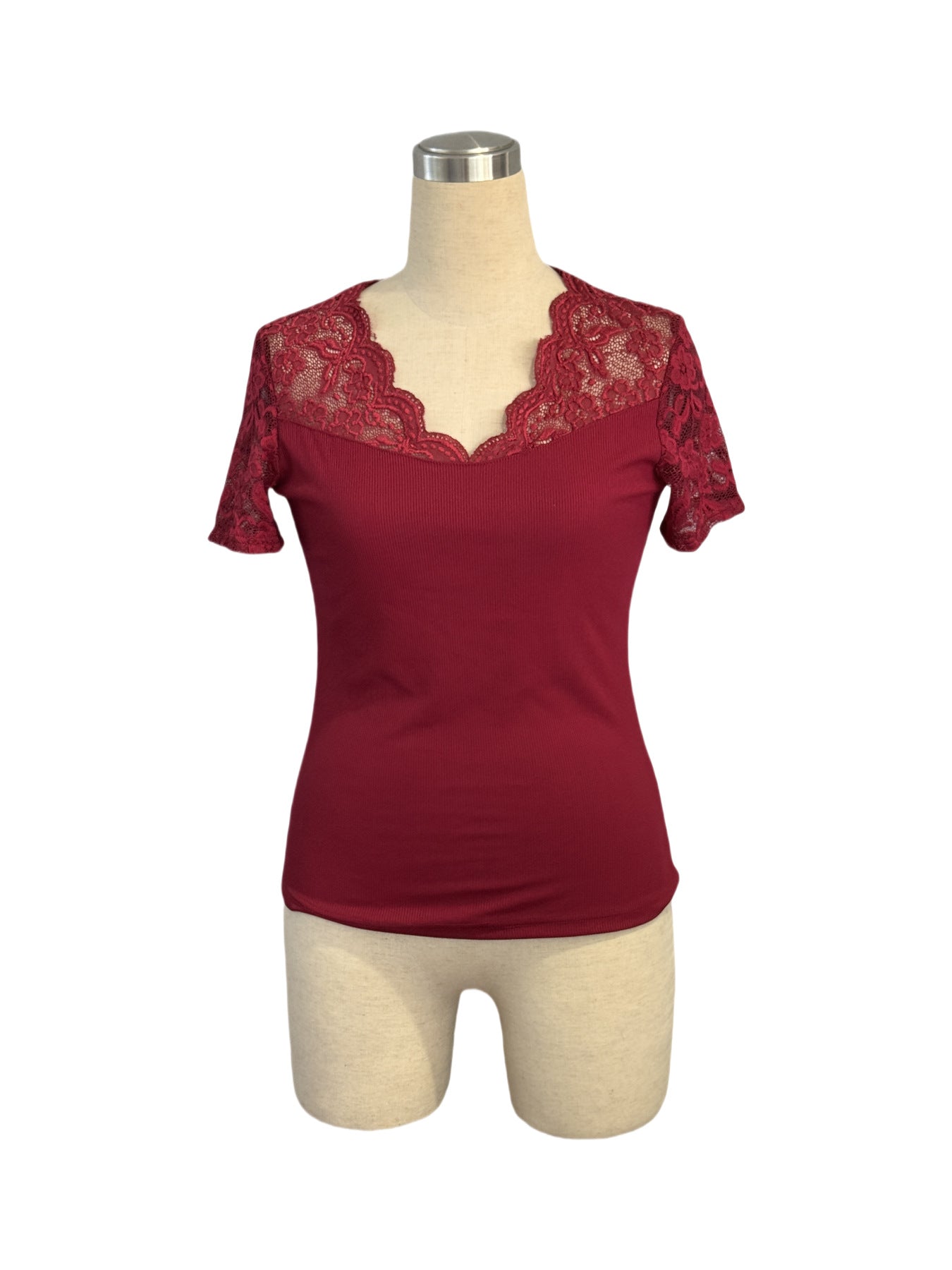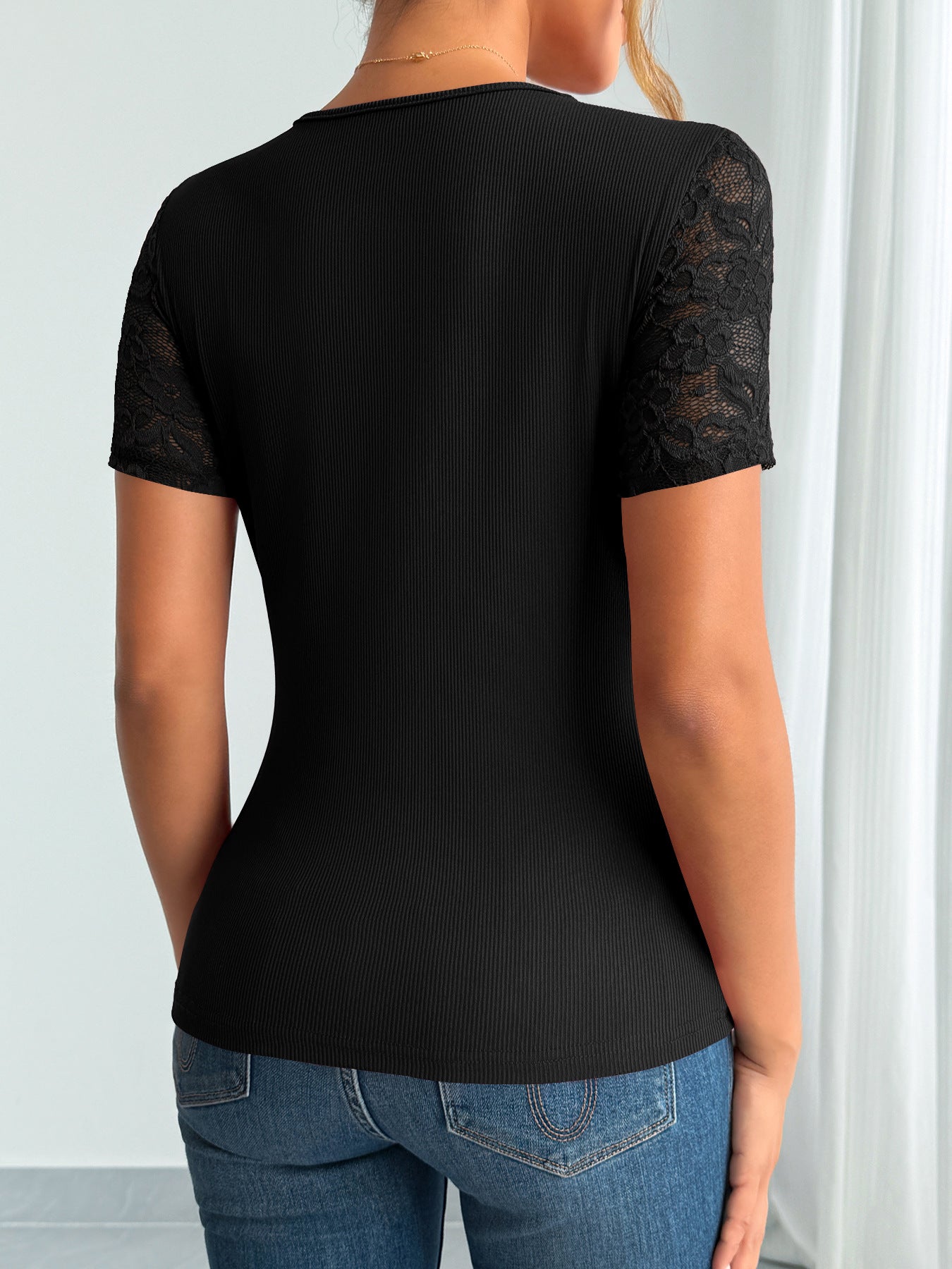 Heidi Mode | Ausschnitt Manschetten Spleißen Spitze Spitze Kurze Ärmel