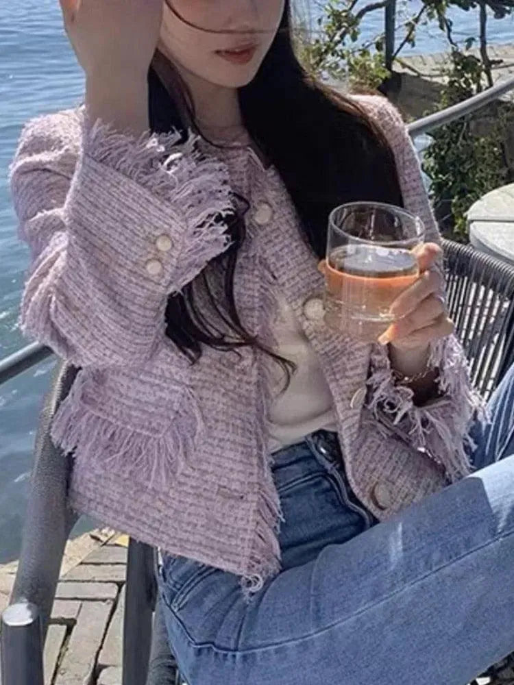 Entdecken Sie die stilvolle Chic Tassel Tweedjacke für Damen von Heidi-Mode - das ideale Kleidungsstück für jede Gelegenheit! Diese modische Tweedjacke lässt alles, was Sie anziehen, elegant und besonders erscheinen. Zeigen Sie Ihren individuellen Stil mit Charme und Selbstbewusstsein, indem Sie Ihr Outfit mit dieser fantastischen Jacke abrunden.