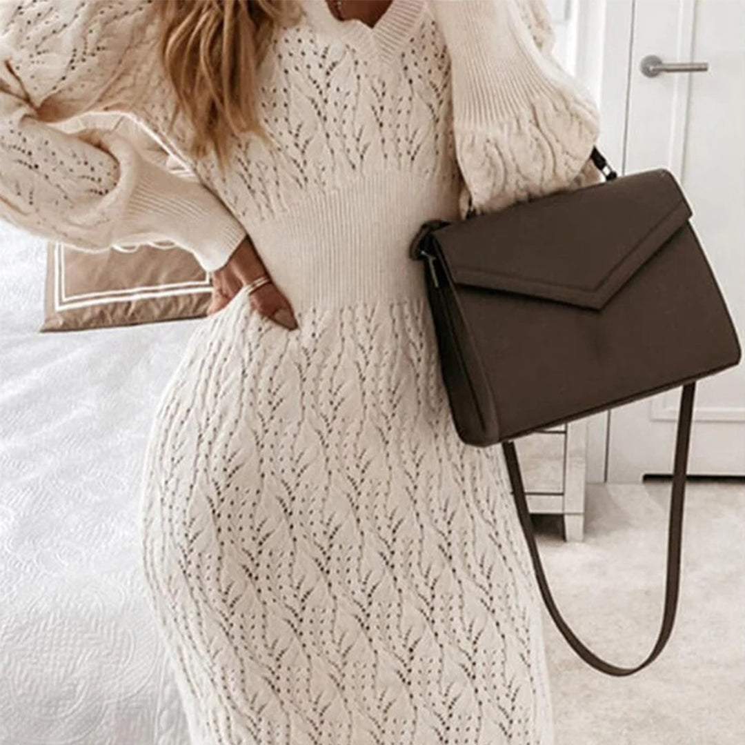 Dieses stilvolle und bequeme Kleid mit Strickdesign ist die ideale Ergänzung zu Ihrer Modekollektion. Das edle Material und das ansprechende Design machen es zu einem unverzichtbaren Teil für unterschiedlichste Anlässe. Ob im Beruf oder bei einem besonderen Ereignis, mit diesem Kleid sind Sie stets modisch gekleidet.