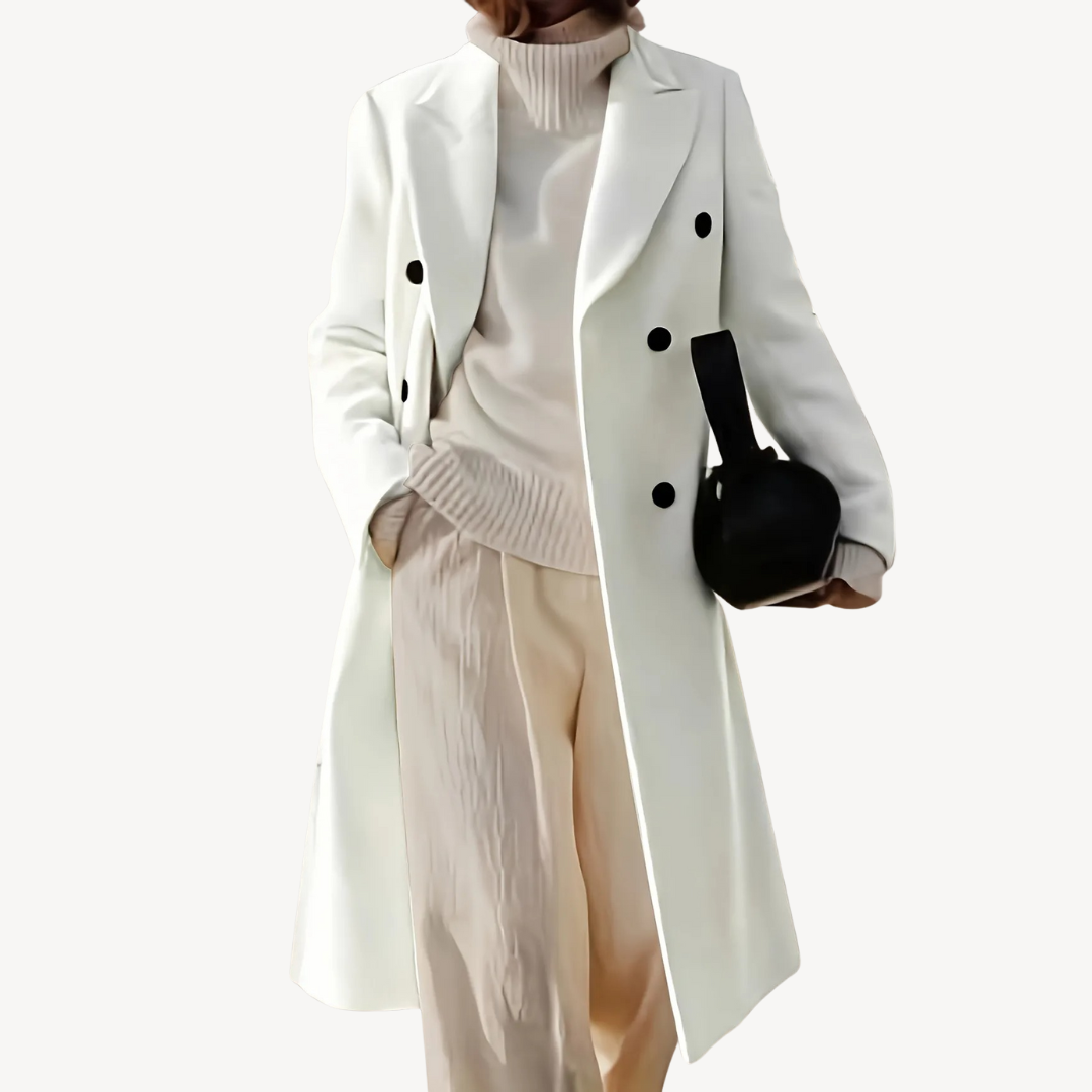 Behalten Sie Ihren eleganten und stilvollen Look mit diesem taillierten Doppelreiher von Heidi-Mode. Dieser schicke Mantel ist die ideale Wahl für sowohl formelle als auch entspannte Anlässe und zeichnet sich durch ein klassisches Design aus, das mit großen schwarzen Knöpfen einen zusätzlichen Hauch von Raffinesse erhält. In einer Vielzahl von vielseitigen Farben erhältlich, darunter Schwarz, Grün, Khaki, Königsblau und Weiß, ist er die perfekte Ergänzung für jedes Outfit.