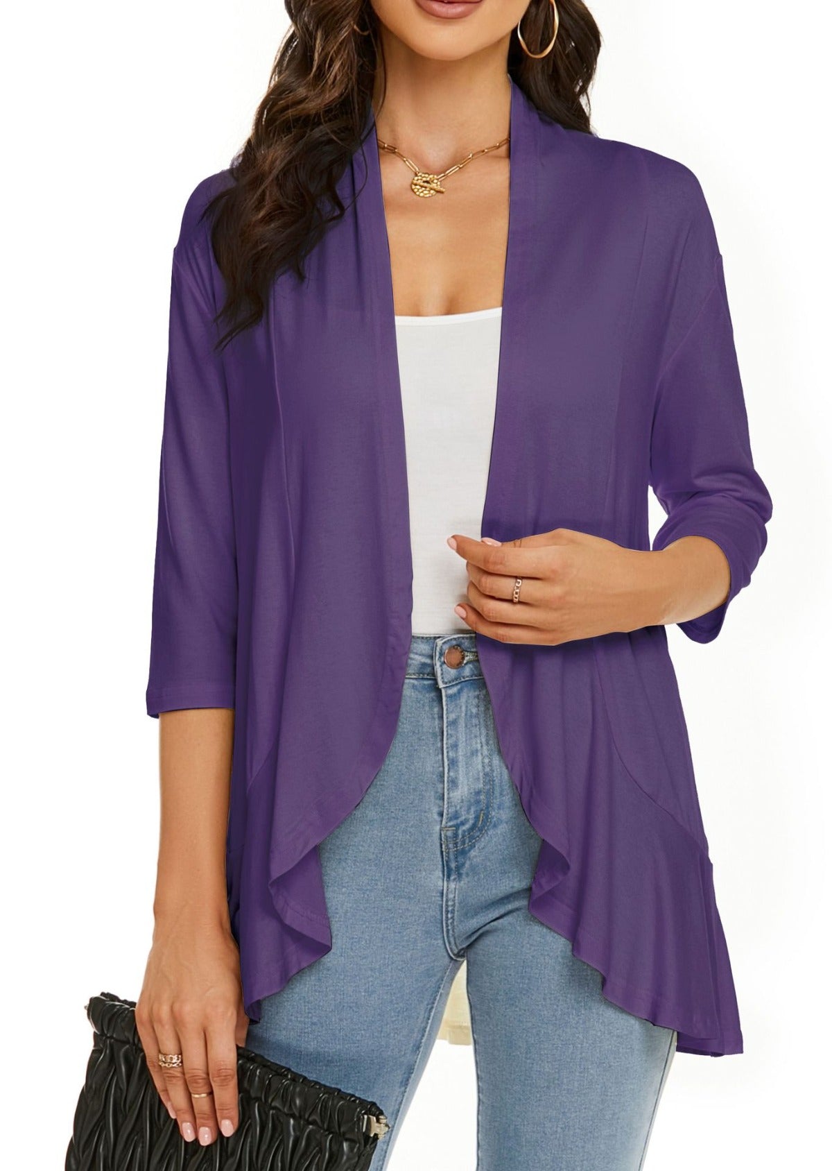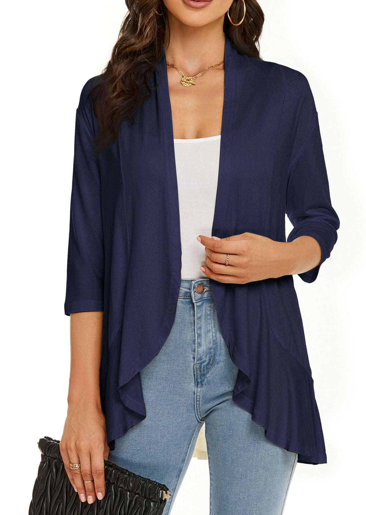Heidi Mode | Einfarbige Strickjacke mit sieben Viertelärmeln und Rüschenrand