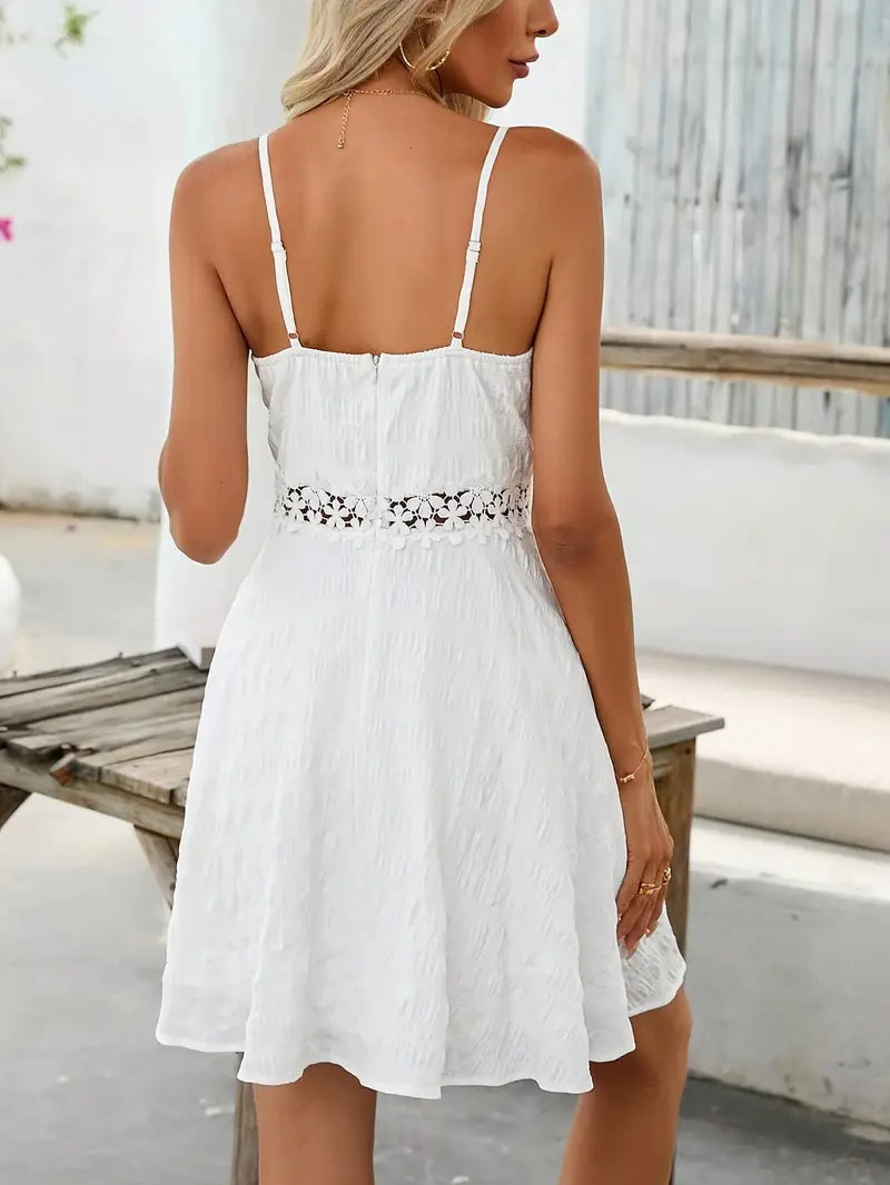 Heidi-Mode | Elegantes Kleid Ohne Ärmel mit Spitze, Eng Anliegender Schnitt, A-Linie und Atmungsaktivität für Strand und Fest.