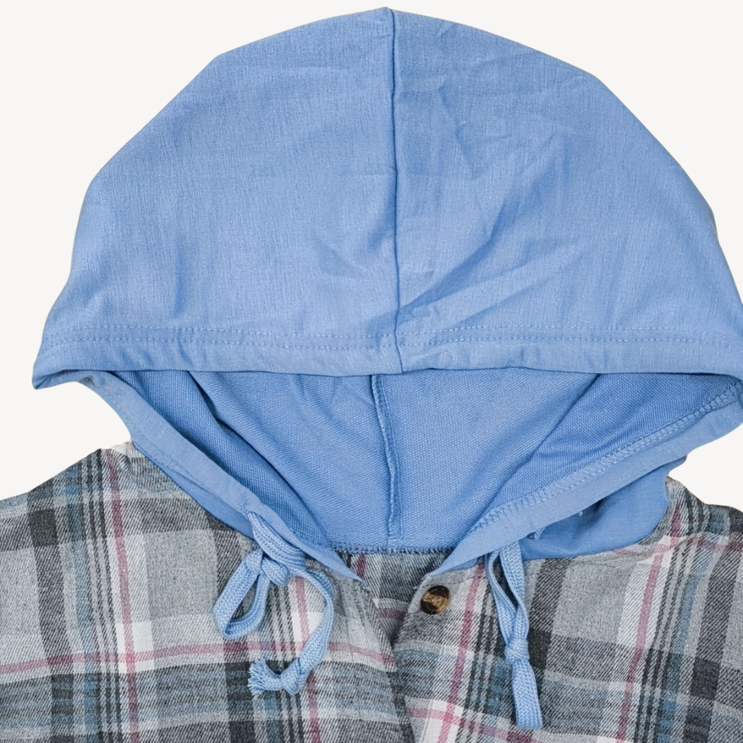 Heidi-Mode | Damen Karierte Button-Down Hemdjacke mit Kapuze