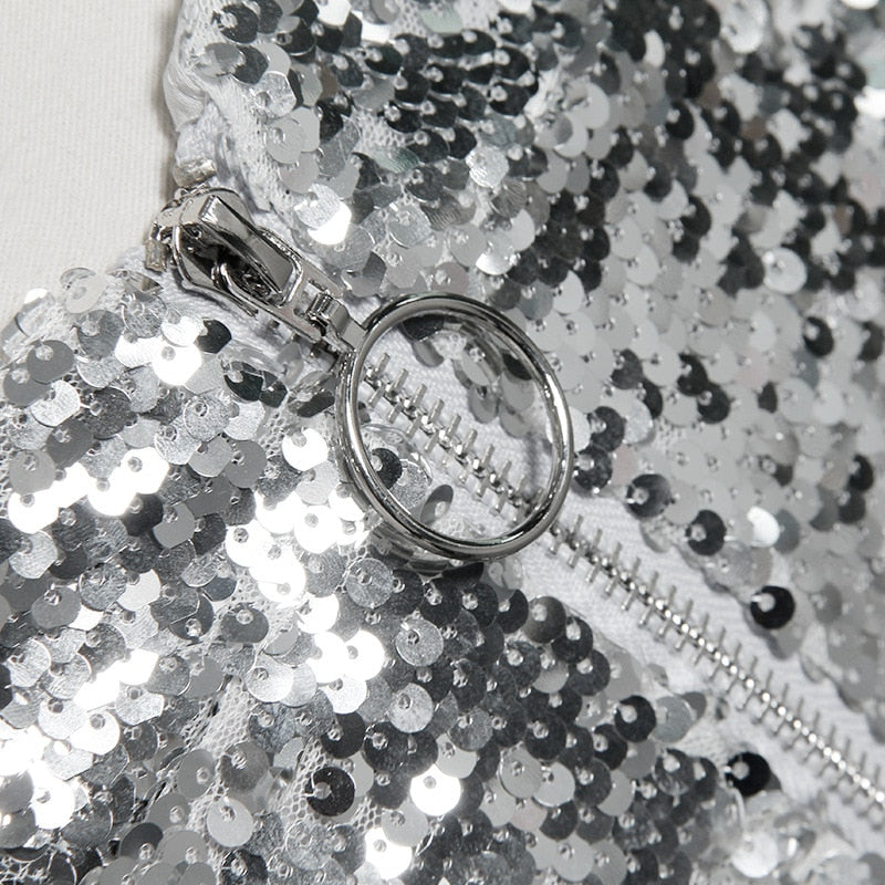 Heidi-Mode | Pailletten Shorts Hohe Taille Oring Reißverschluss Front Bodycon