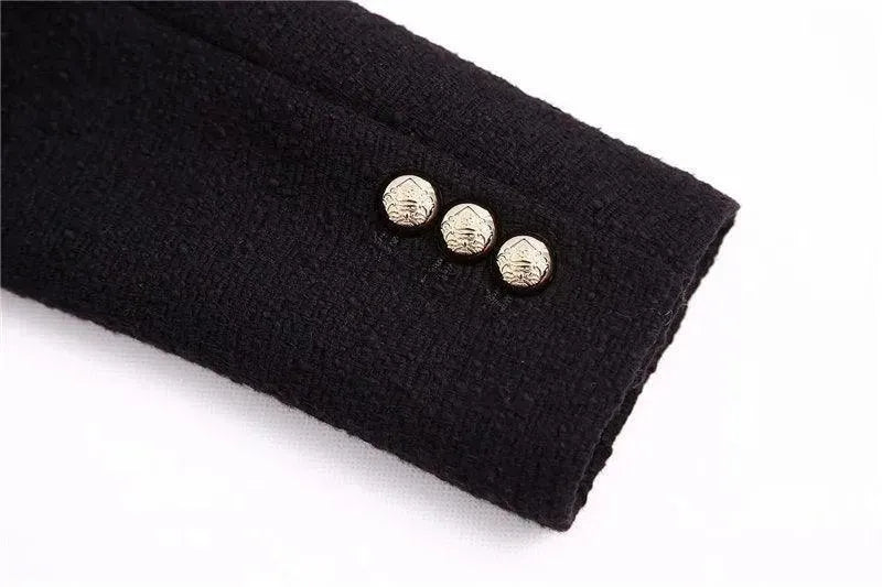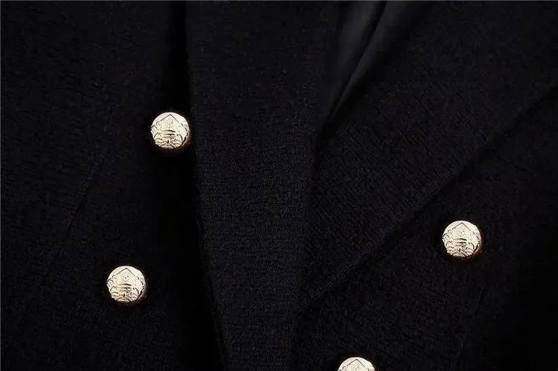 Ein unverzichtbares Kleidungsstück für jede geschmackvolle Damenmode-Garderobe, dieser Damenblazer ist ein zeitloser Klassiker. Dieser elegante Damenblazer stellt eine hervorragende Möglichkeit dar, Ihrem Look eine Prise Raffinesse zu verleihen. In einem ansprechenden Schwarz gestaltet, ist er ein vielseitiges Kleidungsstück, das sich für eine Vielzahl von Anlässen eignet. Der dezente, aber schicke Schalkragen verleiht dem Blazer einen modernen Touch, der perfekt zu formeller oder lässiger Kleidung passt.
