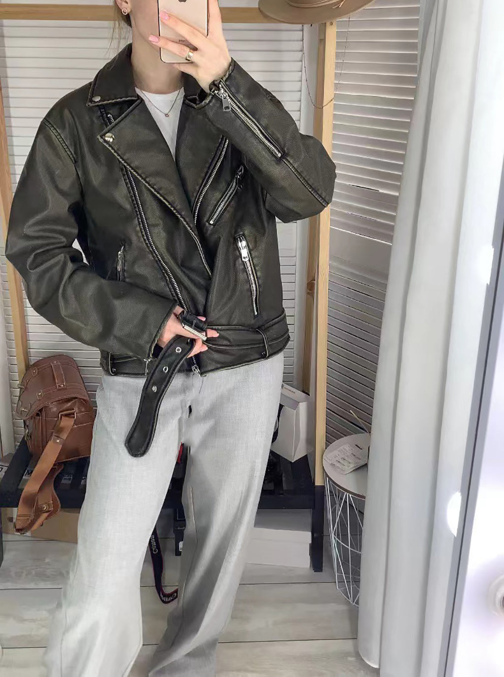 Heidi-Mode | Vegan Leder Trenchcoat mit Reißverschluss und Gürtel für Frauen Umweltfreundliche Materialien