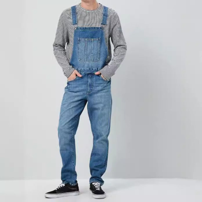 Herren Denim Latzhose im Vintage-Stil mit regulierbaren Trägern und praktischen Taschen Heidi-Mode