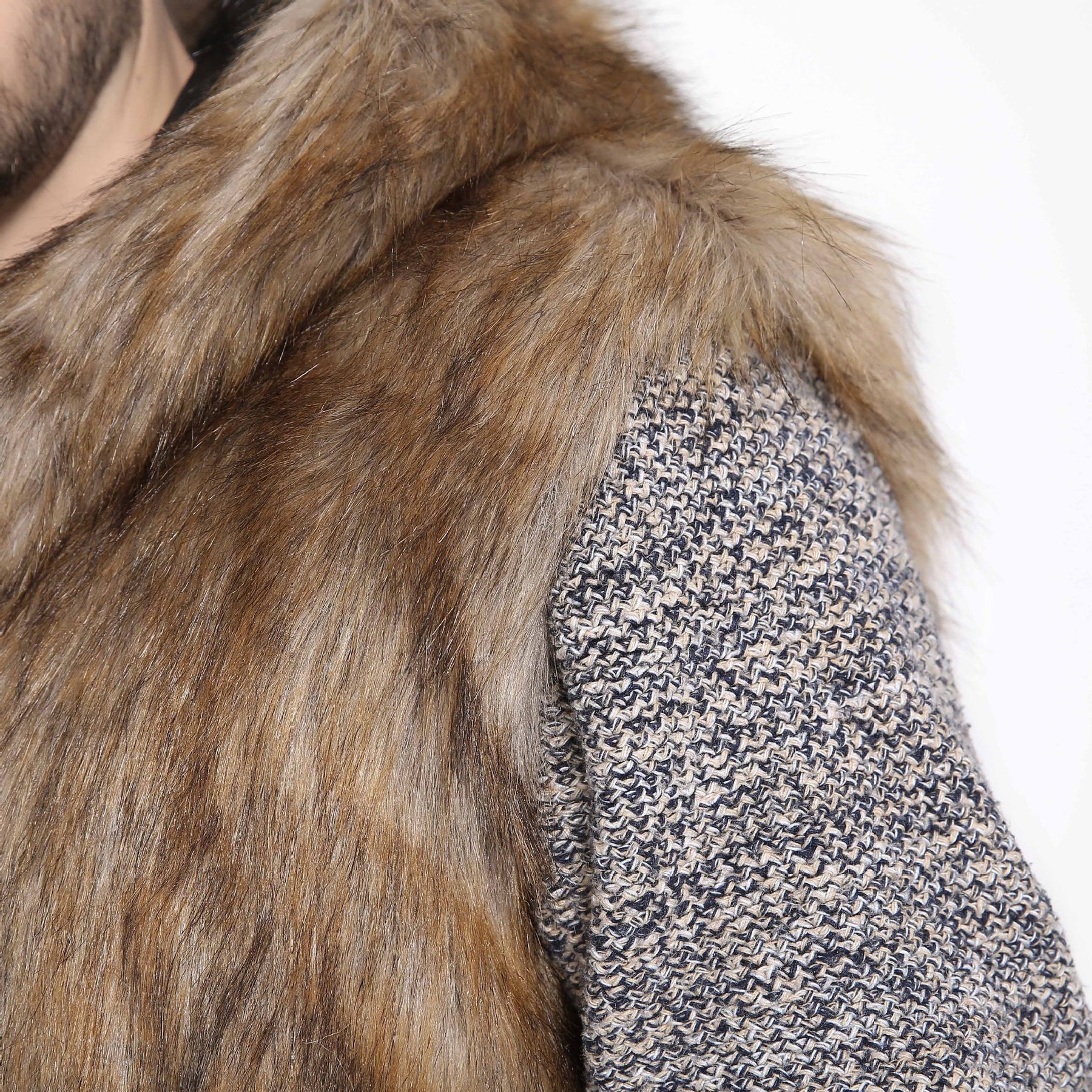 Herren Elegante Kunstpelzjacke mit Kapuze und seitlichen Taschen Heidi-Mode