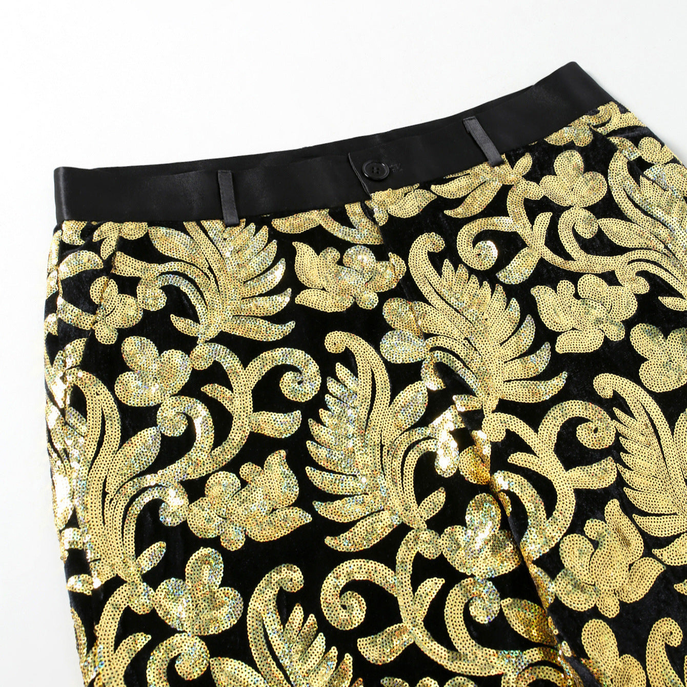 Herren elegante Pailletten-Hosen mit floralem Muster Heidi-Mode