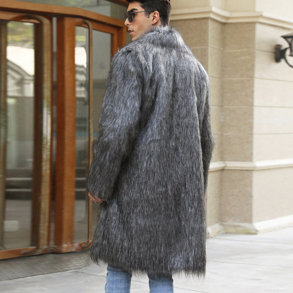 Herren Eleganter Kunstpelz-Mantel mit breitem Kragen und Relaxed Fit Heidi-Mode