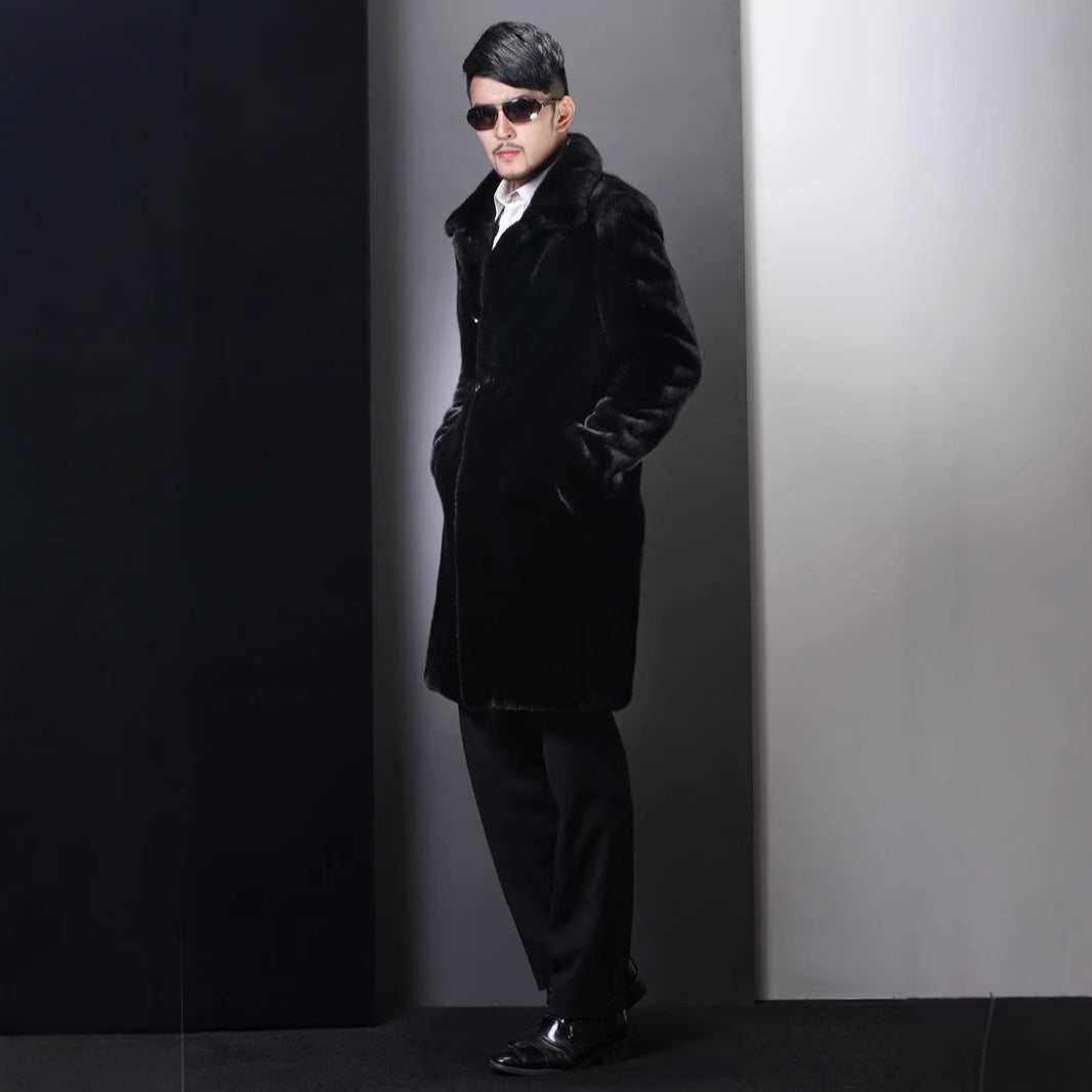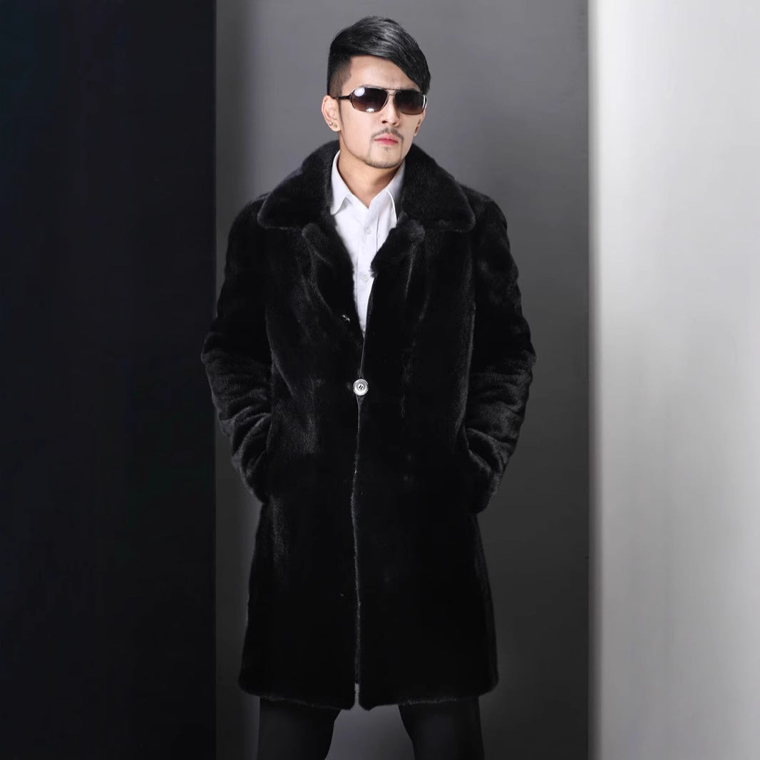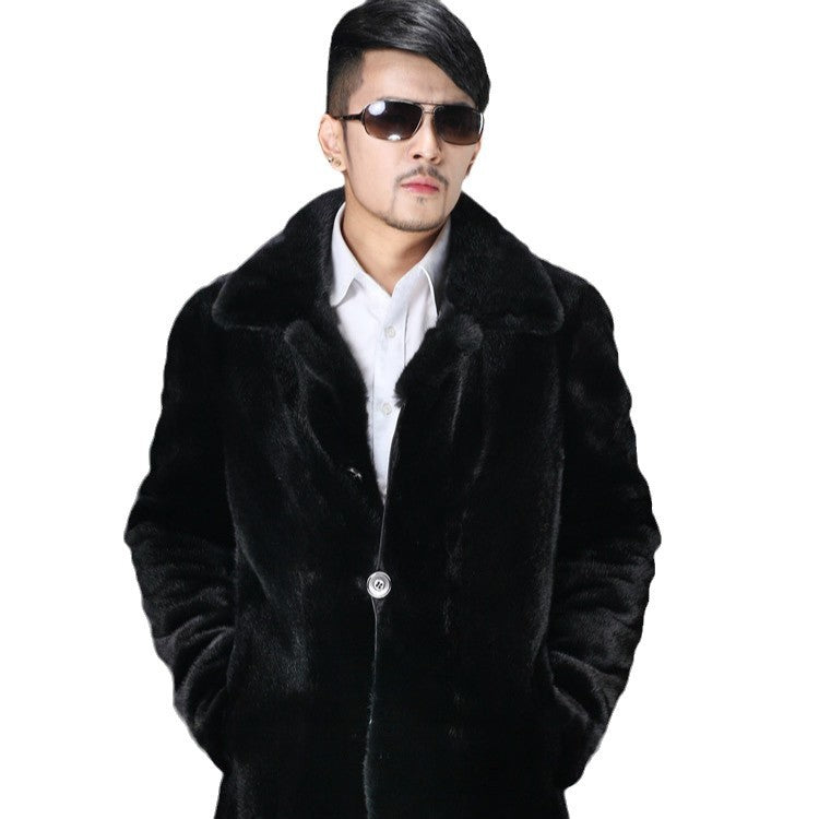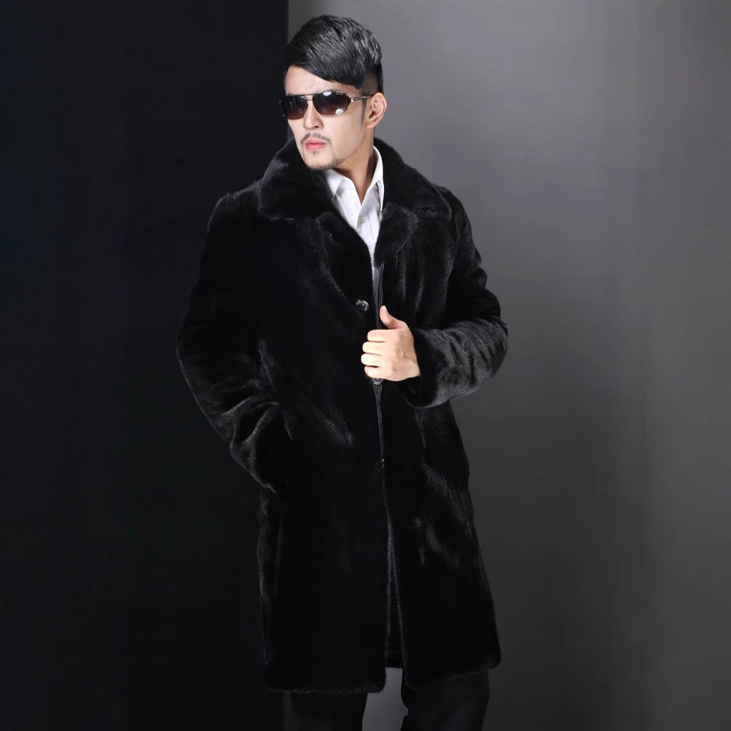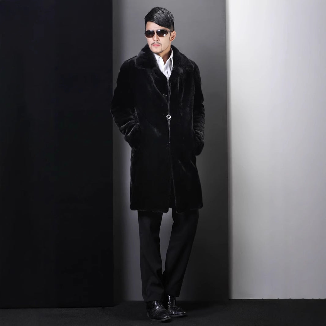 Herren Eleganter Kunstpelzmantel mit tiefem Kragen Heidi-Mode