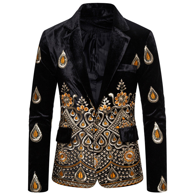 Herren eleganter Samtblazer mit aufwendiger Verzierungen Heidi-Mode