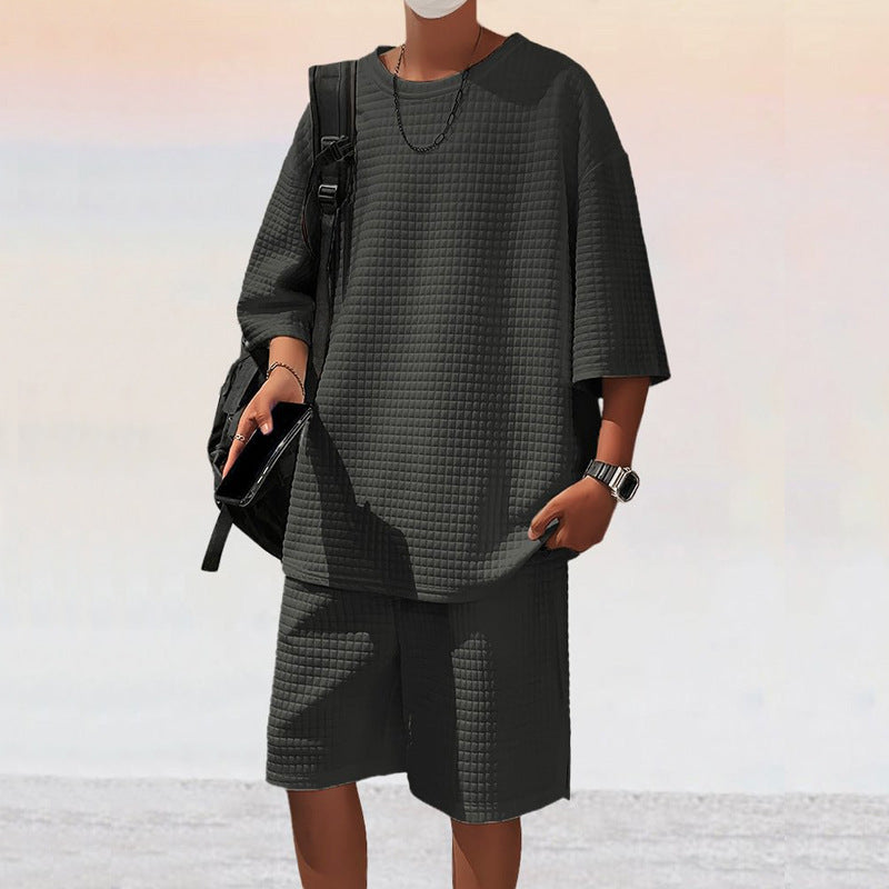 Entdecken Sie unser Herren Freizeitsport Set, das Stil und Komfort vereint. Dieses Set verfügt über ein locker sitzendes Oberteil und atmungsaktive Shorts, die ideal für sportliche Aktivitäten und entspannte Tage sind. Die besondere Struktur des Materials sorgt für eine hervorragende Luftzirkulation, während der lässige Schnitt ein modernes Tragegefühl vermittelt.