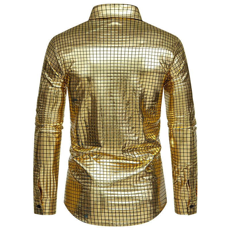 Herren Glänzendes Fashion-Hemd mit quadratischem Muster Heidi-Mode