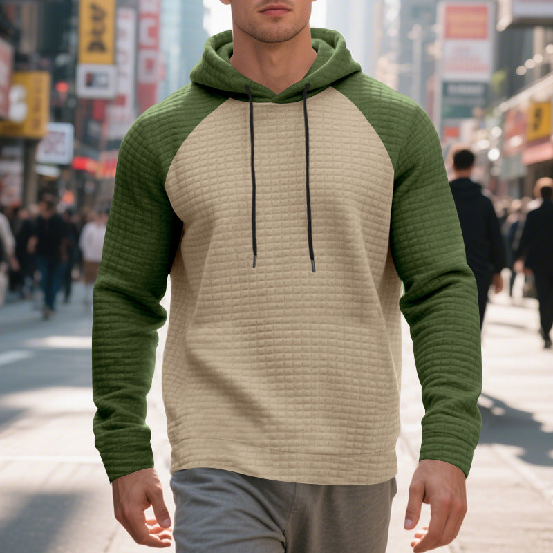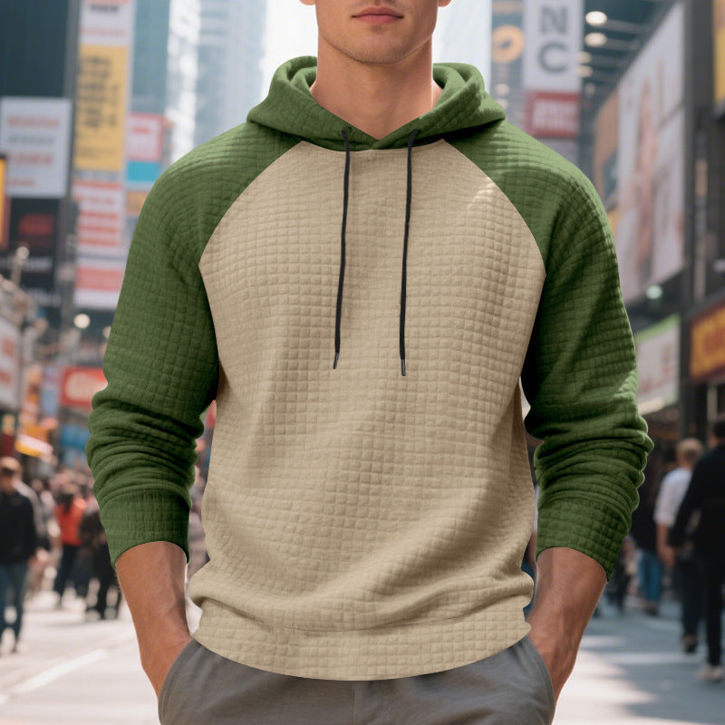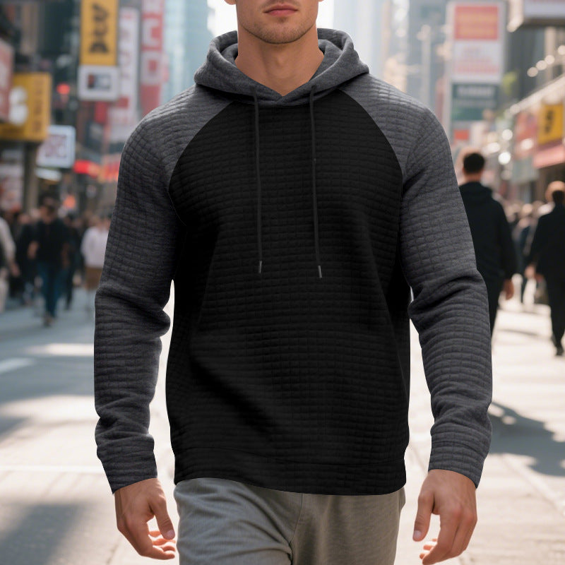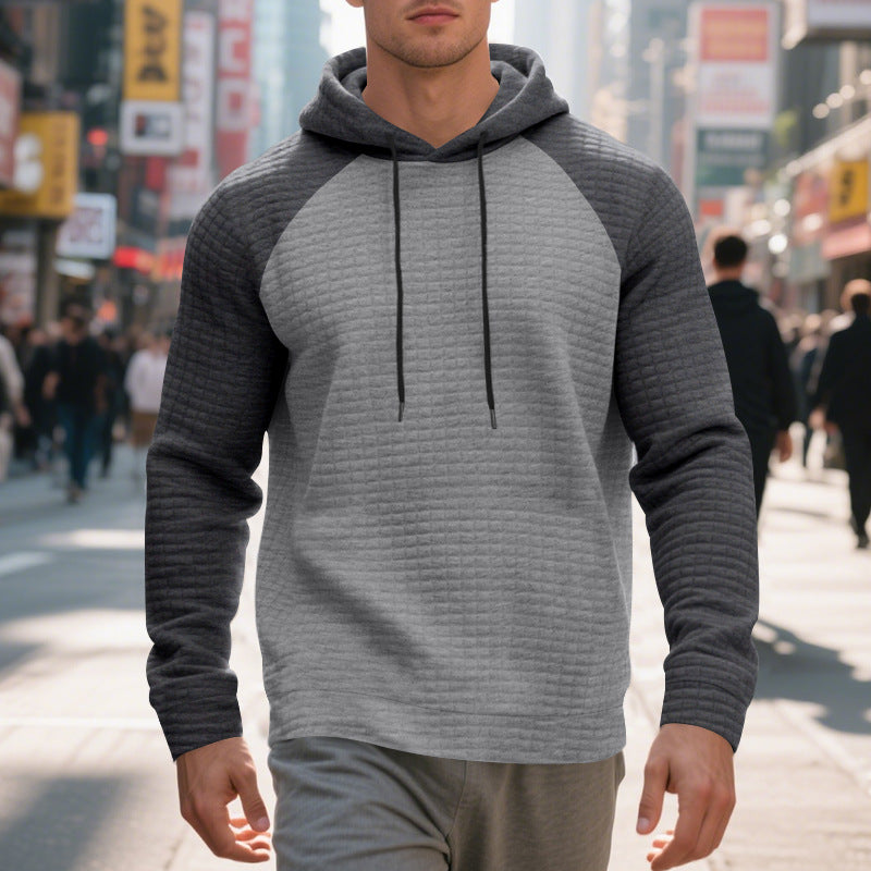 Herren Kapuzenpullover mit strukturiertem Stoff und farblich abgesetzten Ärmeln Heidi-Mode