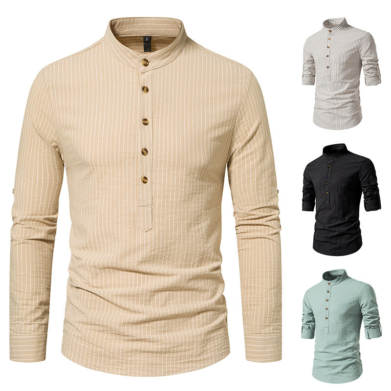 Herren Langarmhemd mit innovativem Stehkragen und geschmackvollem Streifenmuster Heidi-Mode