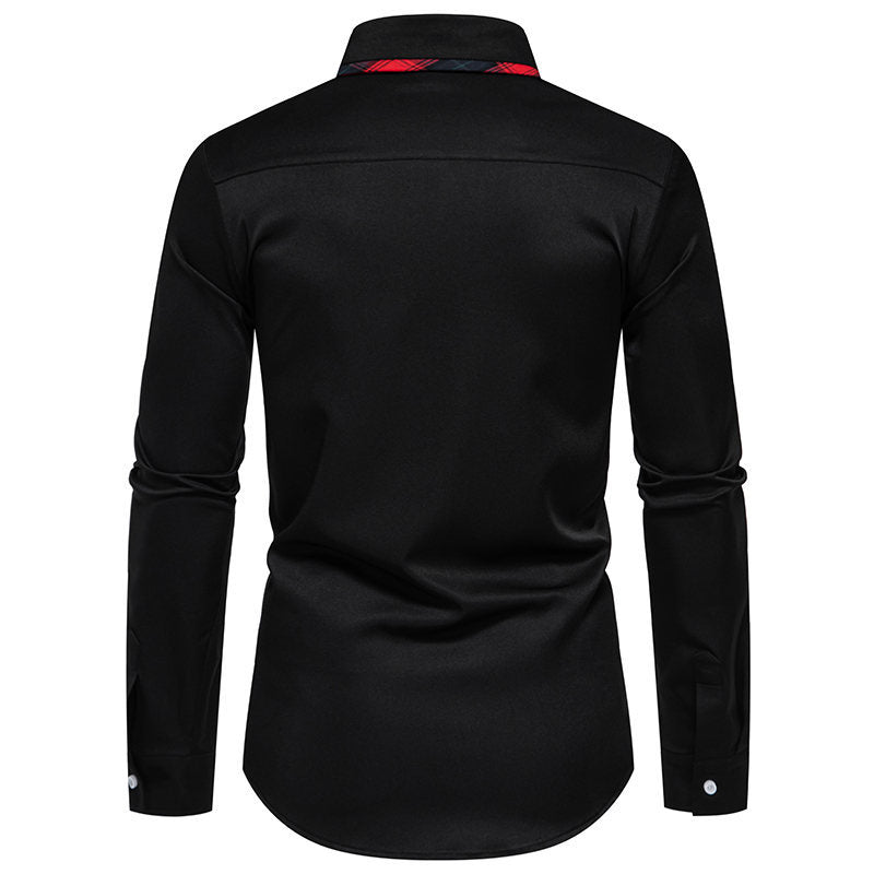Herren Langarmhemd mit karierter Kragenverzierung Heidi-Mode