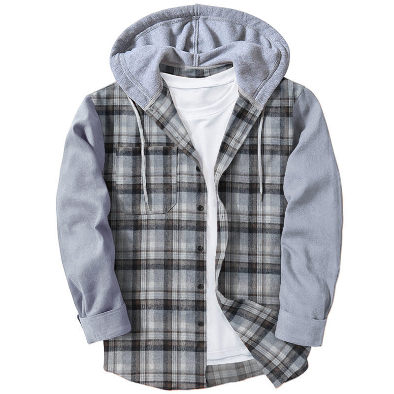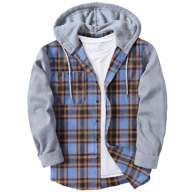 Herren lässige Holzfällerhemden mit Kapuze und zwei aufgesetzten Taschen Heidi-Mode