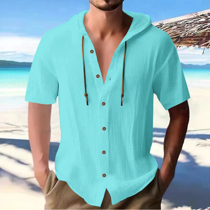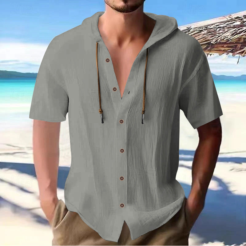 Entdecken Sie unser lässiges Herrenhemd mit Kapuze, das ideal für warme Tage am Strand oder entspannte Ausflüge ist. Dieses Hemd kombiniert Funktionalität und Stil und sorgt für einen modernen Look.
