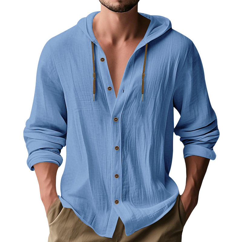 Herren lässiges Kapuzenshirt aus atmungsaktiver Baumwolle mit Knopfleiste und verstellbarem Kordelzug Heidi-Mode