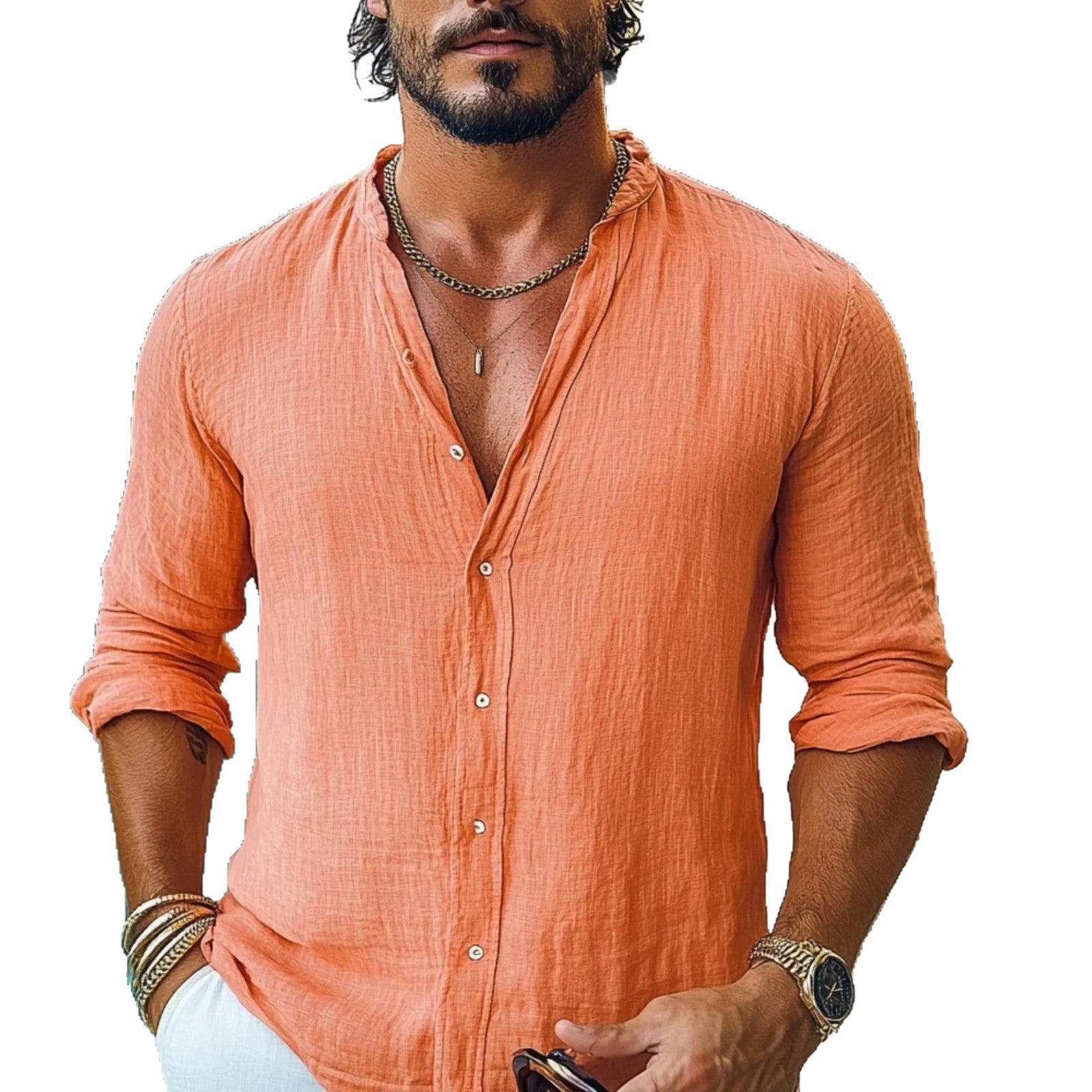 Herren leichte Langarmbluse mit Knopfleiste und bequemer Passform Heidi-Mode