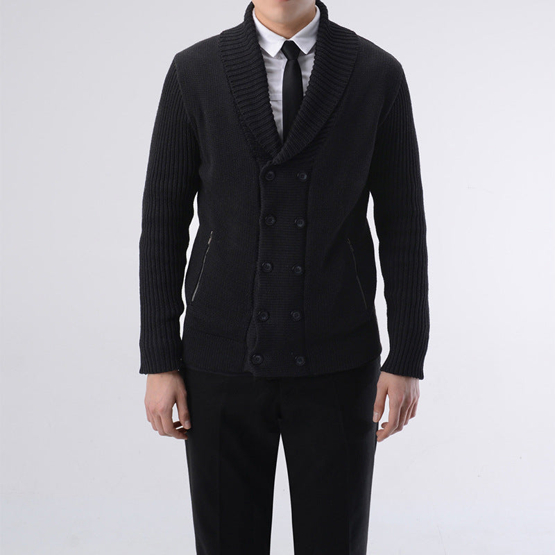 Herren modische Strickjacke mit doppelter Knopfleiste und seitlichen Reißverschlusstaschen Heidi-Mode