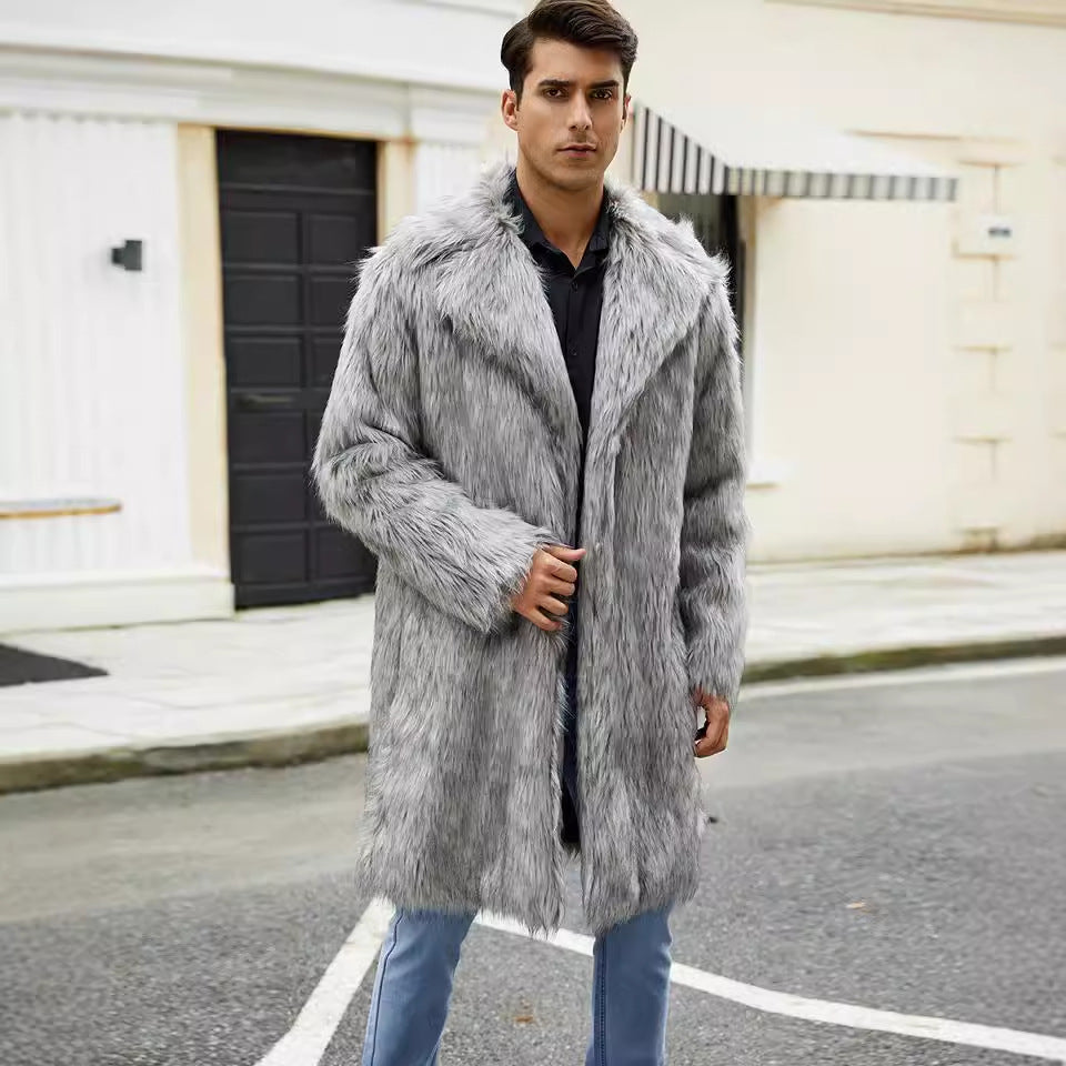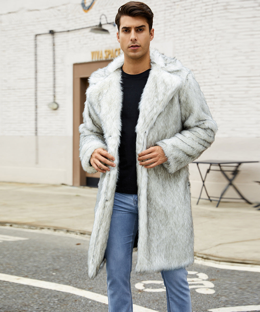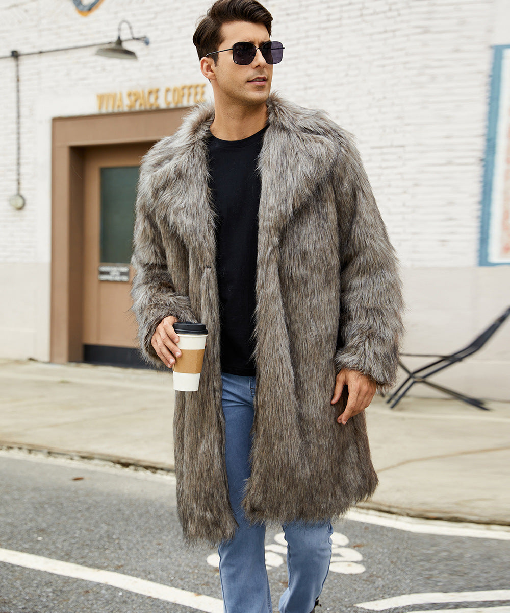 Herren Modischer Kunstpelzmantel mit breitem Kragen und bequemer Passform Heidi-Mode