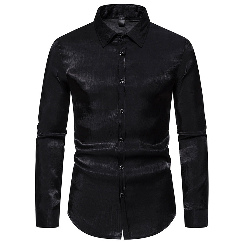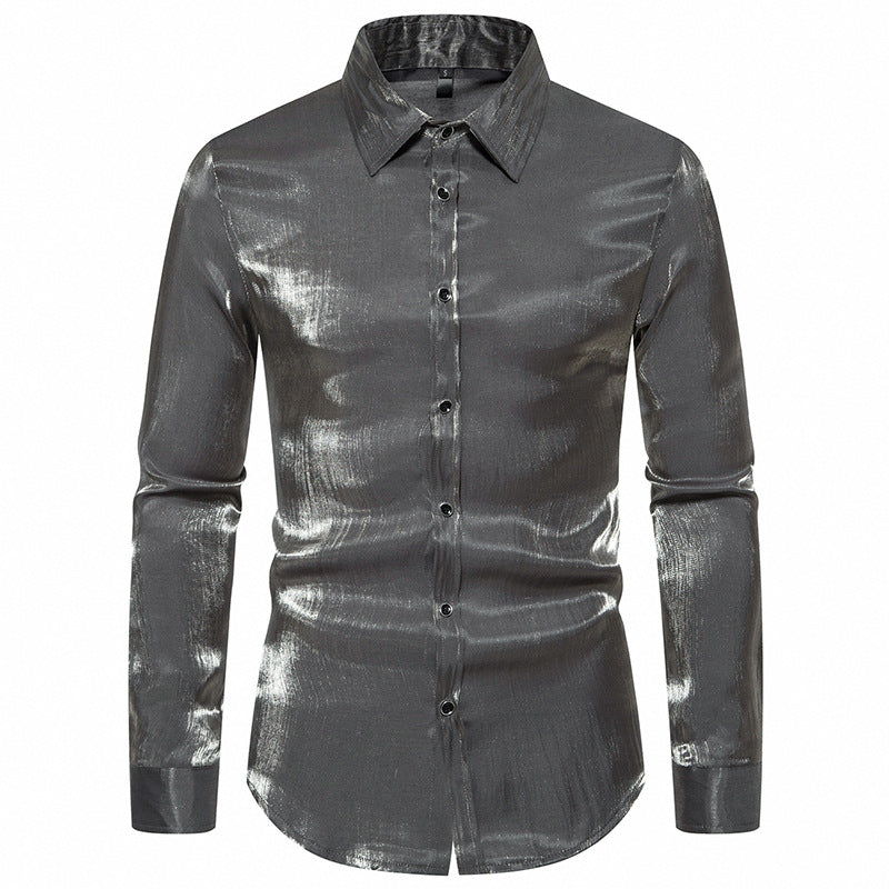 Entdecken Sie unser Herren schimmerndes Langarmhemd von Heidi-Mode – die perfekte Ergänzung für Ihre Garderobe. Dieses exklusive Hemd besticht durch seine glatte, glänzende Oberfläche, die für einen modernen und eleganten Look sorgt.